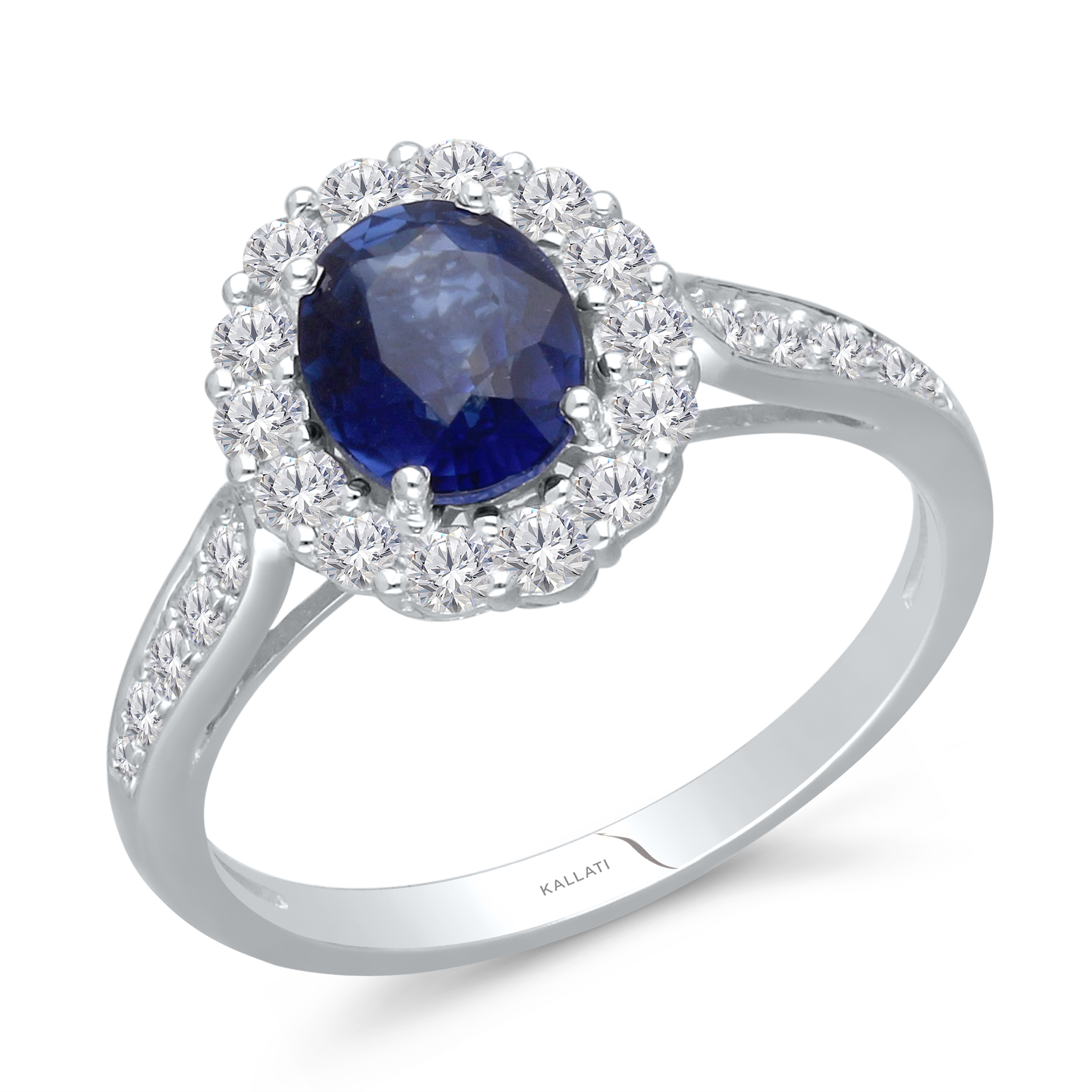 14K WHITE GOLD CEYLON SAPPHIRE DIA RI