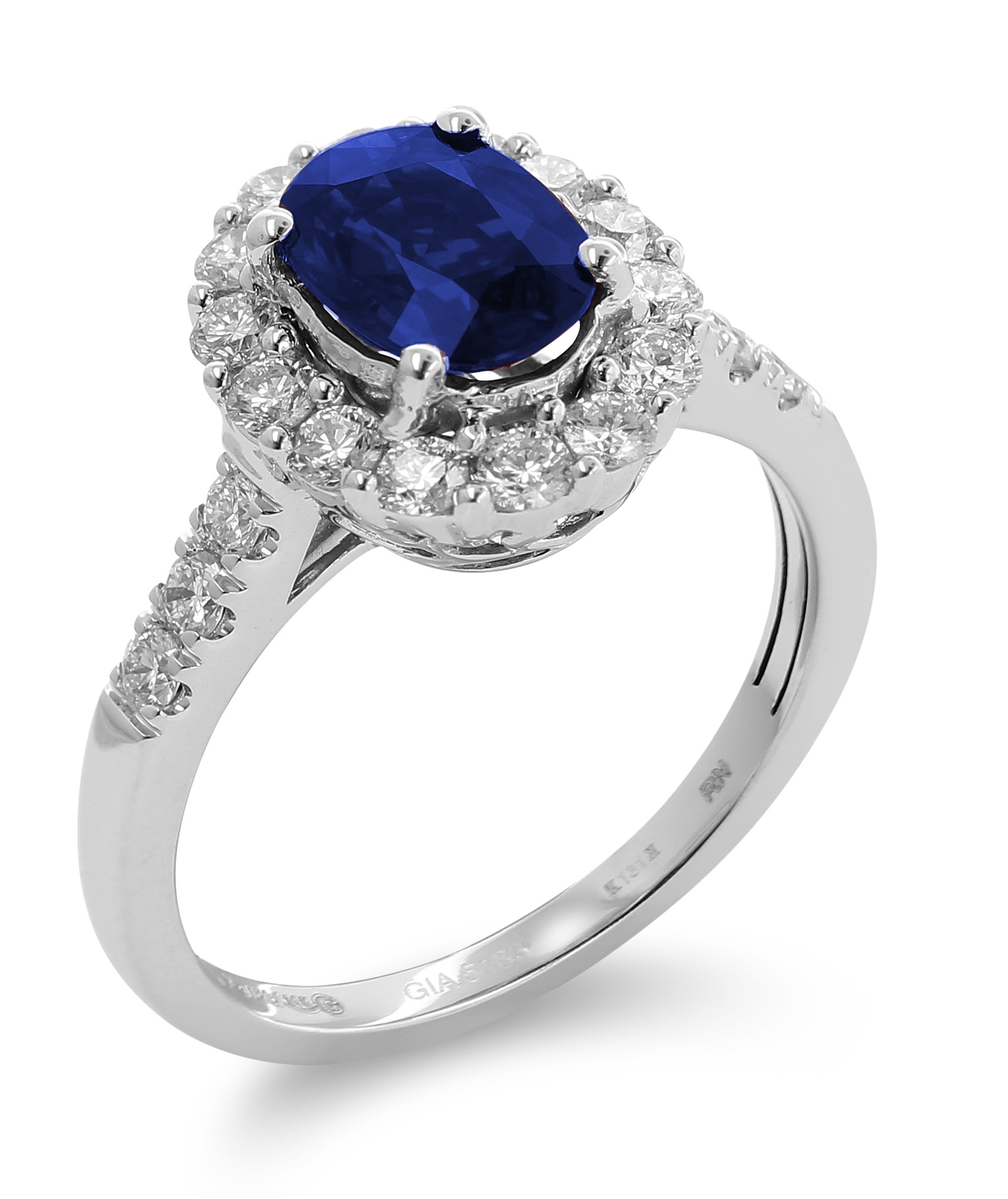 14K WHITE GOLD SI CEYLON SAPPHIRE DIA RI