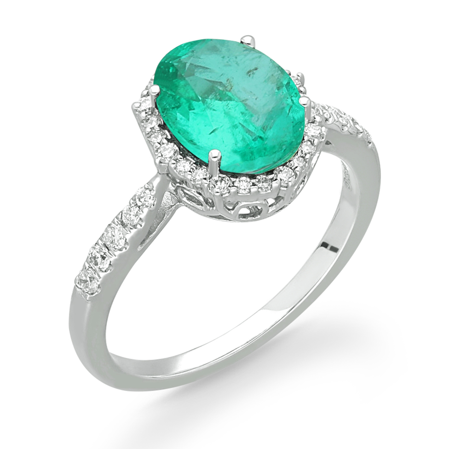 14K WHITE GOLD COLUMBIA EMERALD DIA RING