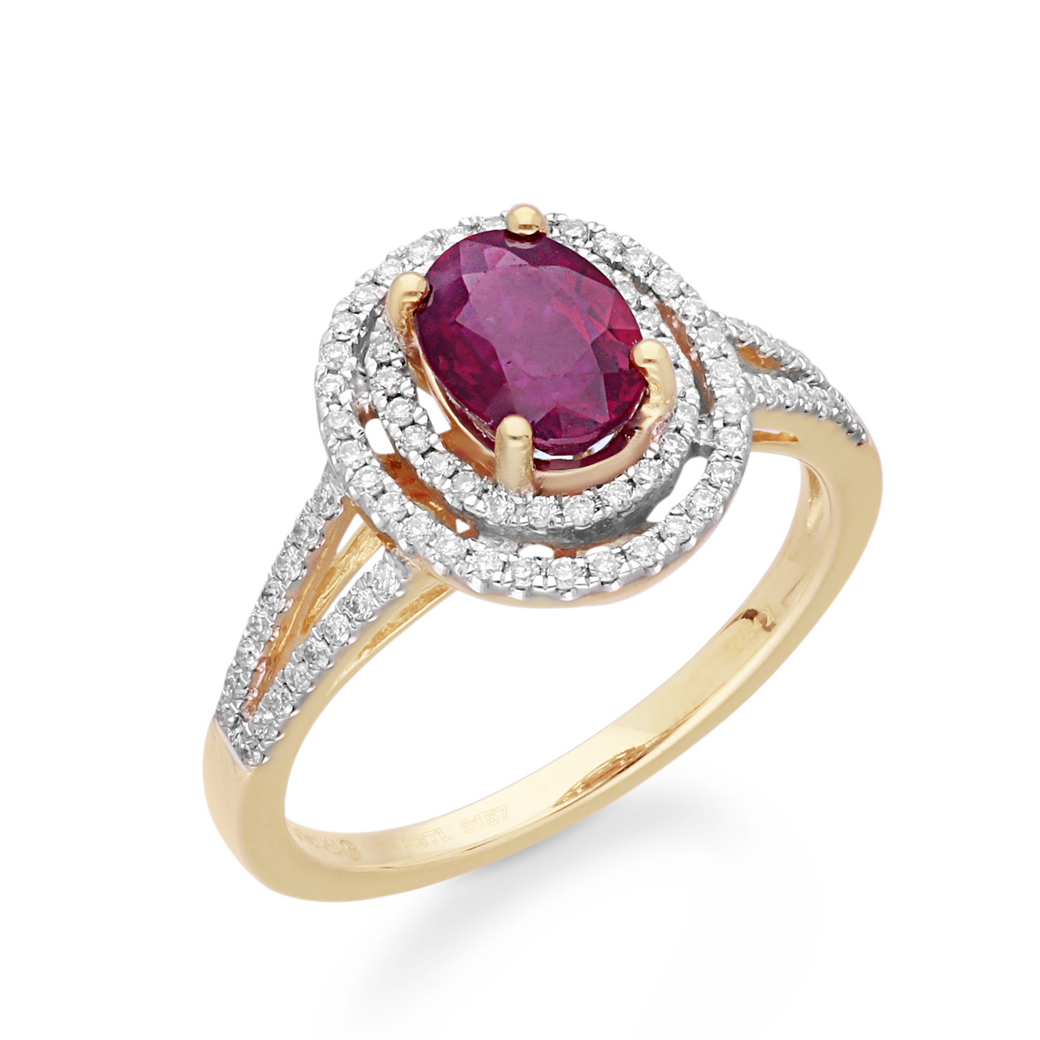14K YELLOW GOLD GIA RUBY & WHITE DIAMOND