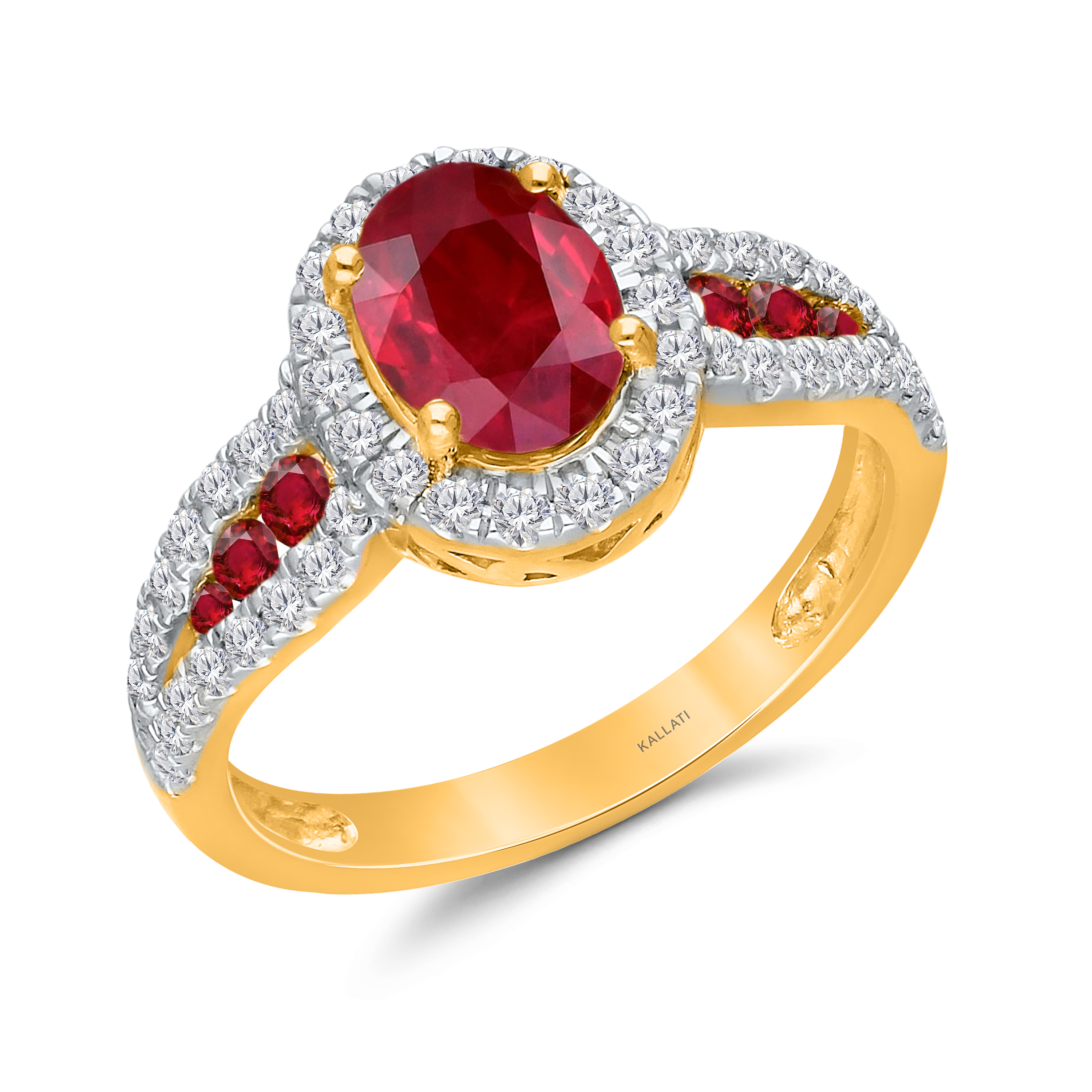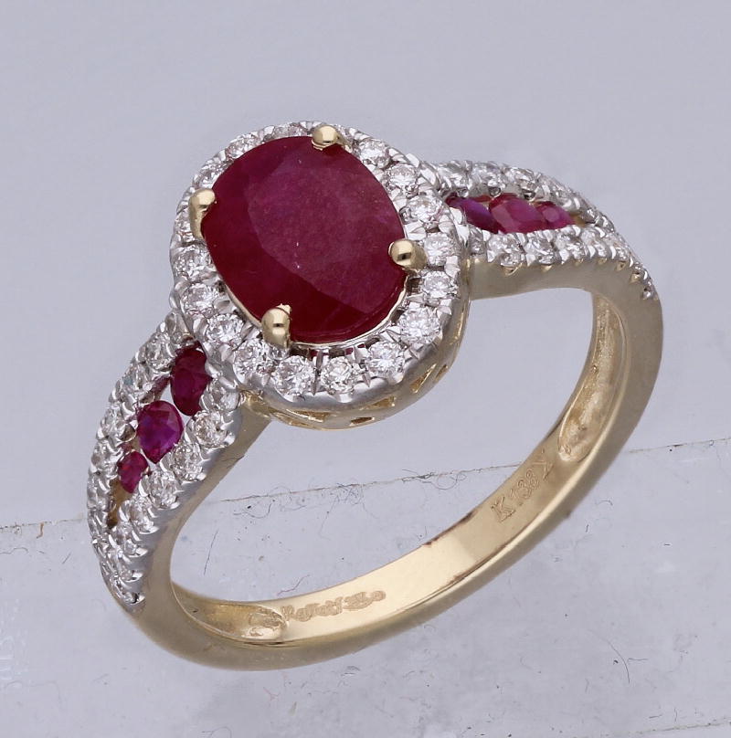 14K YELLOW GOLD RUBY & WHITE DIAMOND FASHION RING