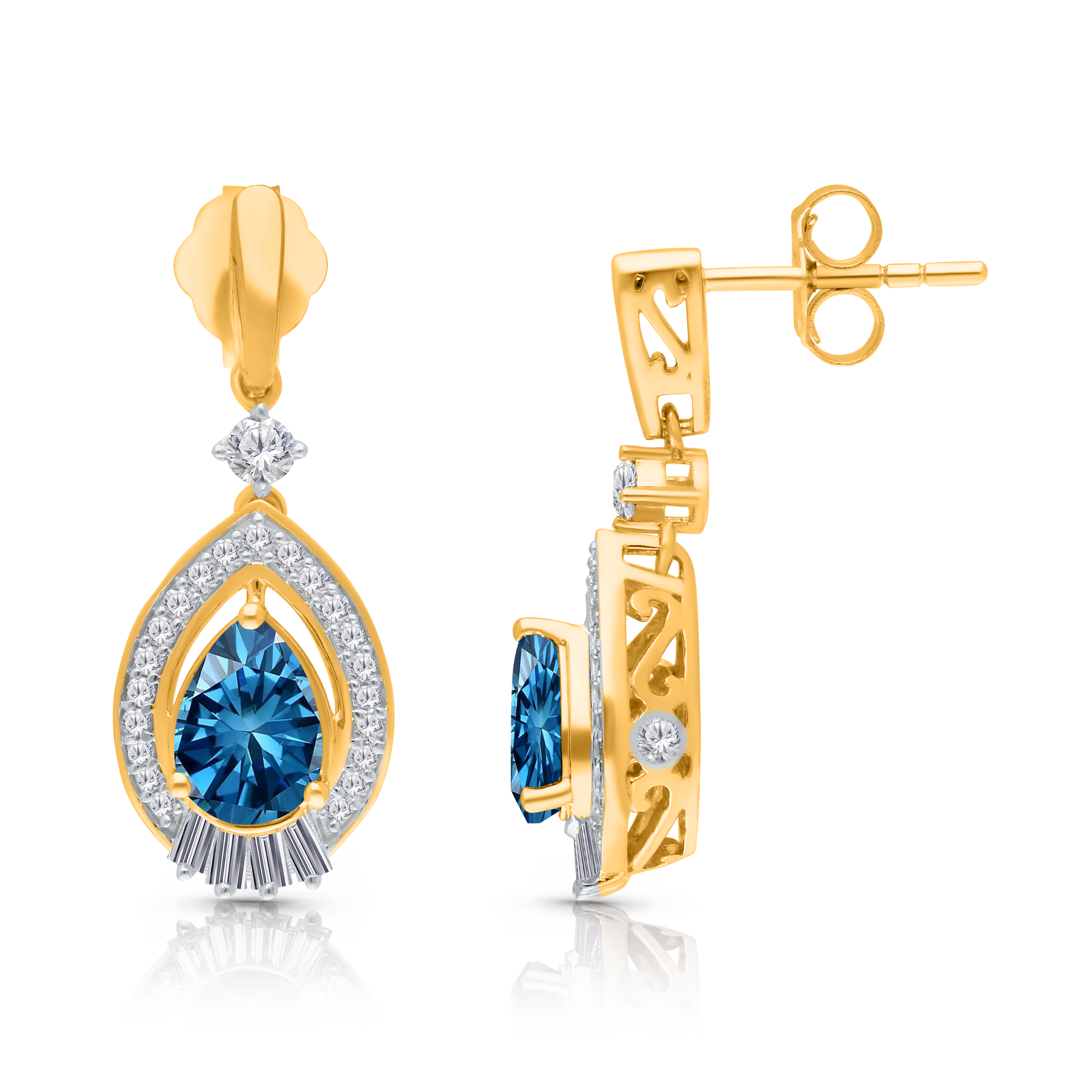 14K YELLOW GOLD LONDON BLUE & WHITE DIAMOND FASHION EARRING