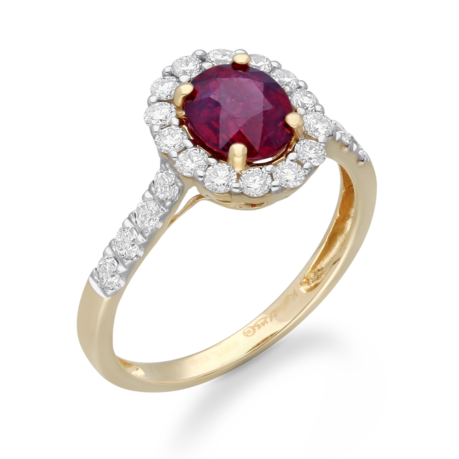 14K YELLOW GOLD GIA RUBY & WHITE DIAMOND