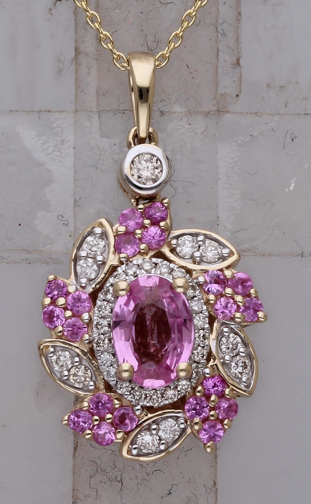 14K YELLOW GOLD MULTI SAPPHIRE WITH WHITE DIAMOND FASHION PENDNAT