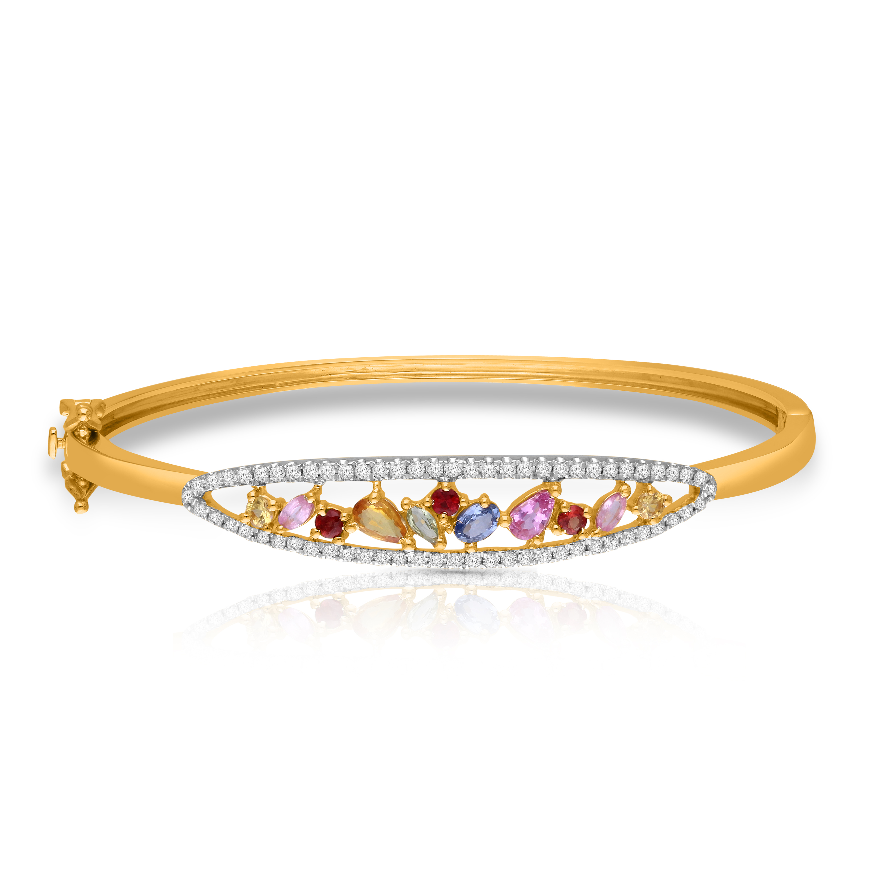 14K YELLOW GOLD MULTI SUPPHIRE & WHITE DIAMOND FASHION BANGLE