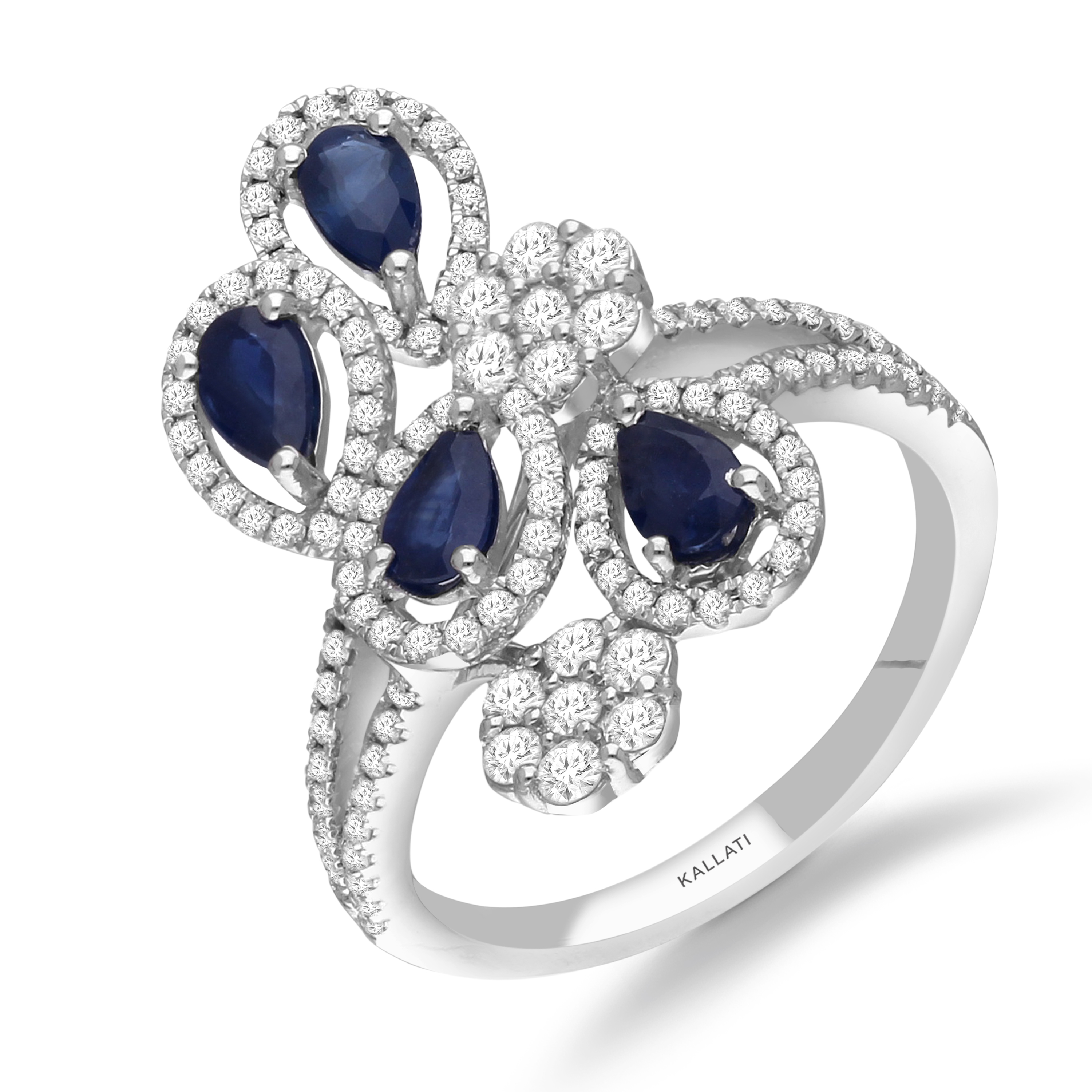 14 K WHITE GOLD SAPPHIRE & WHITE DIAMOND
