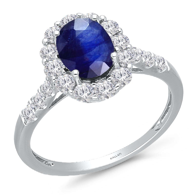 14K WHITE GOLD SAPPHIRE & WHITE DIAMOND