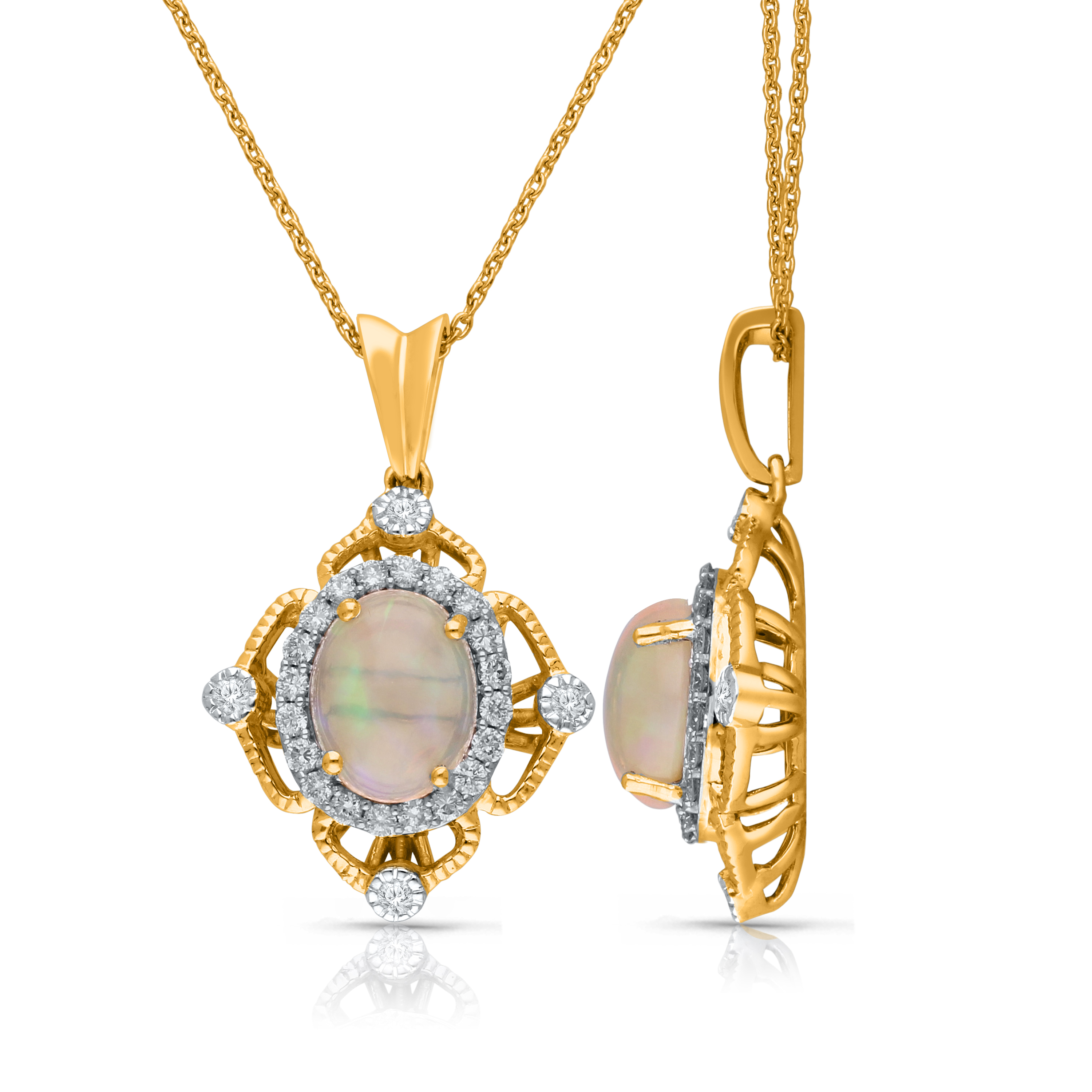 14K YELLOW GOLD OPAL AND WHITE DIAMOND FASHION PENDANT