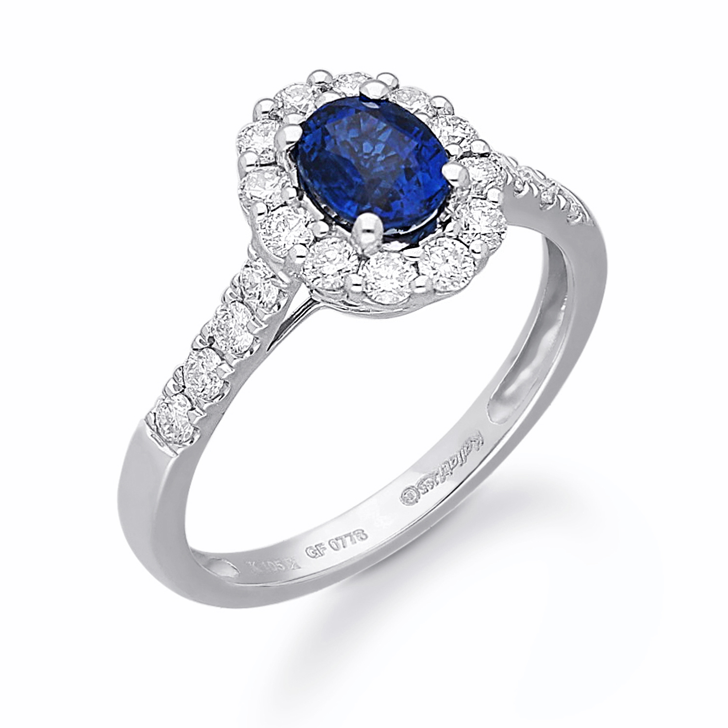 14K WHITE GOLD SI CEYLON SAPPHIRE DIA RI