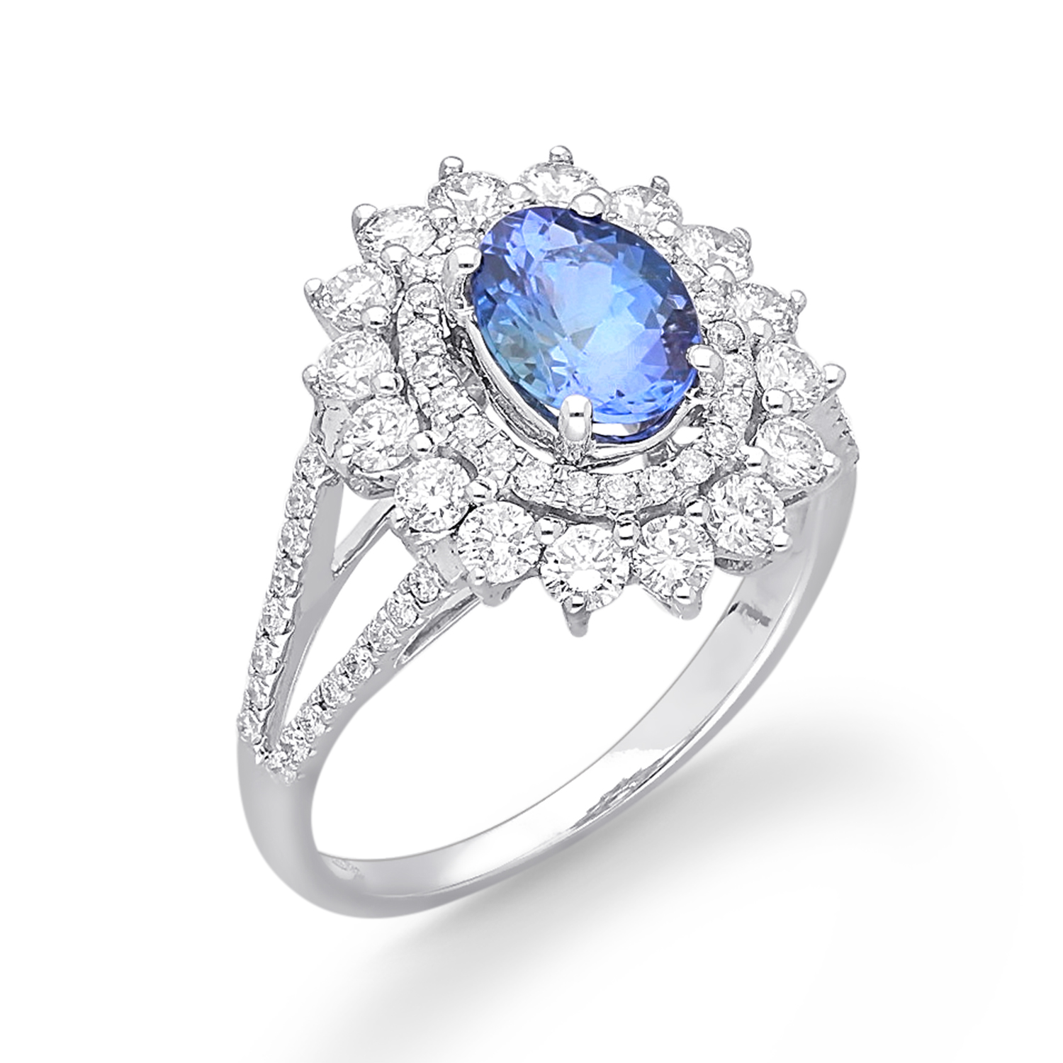 14K WHITE GOLD MULTI SAPPHIRE DIA RING