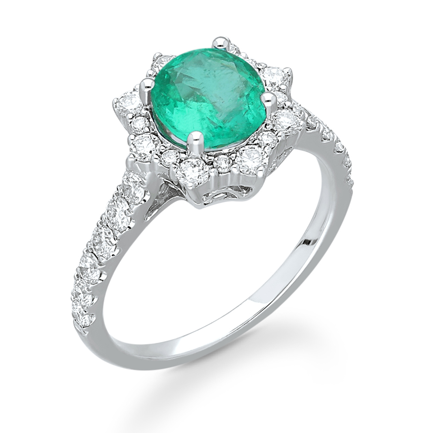 14K WHITE GOLD COLUMBIA EMERALD DIA RING