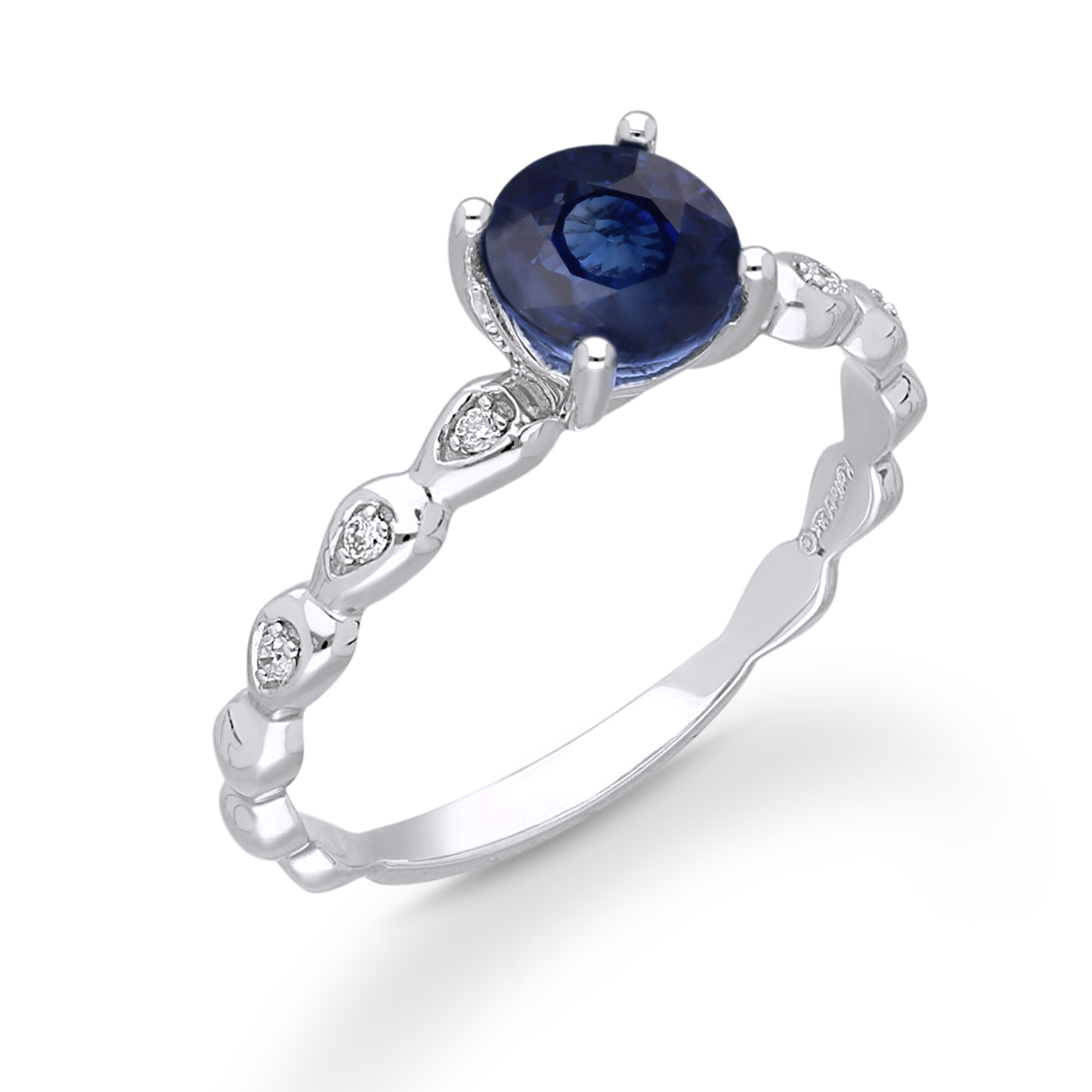 14K WHITE GOLD CEYLON SAPPHIRE & DIA RIN