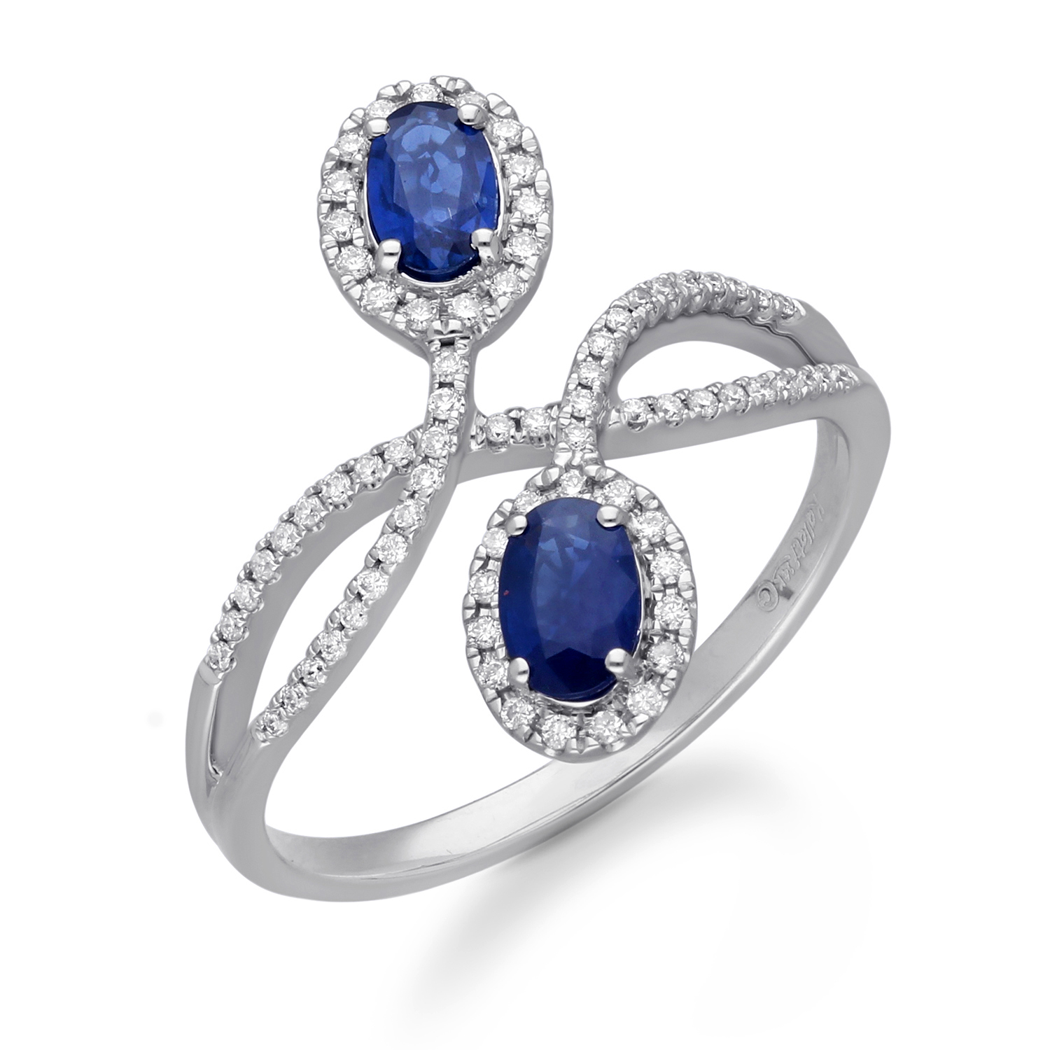 14K WHITE GOLD SAPPHIRE WITH WHITE DIAMOND FASHION RING