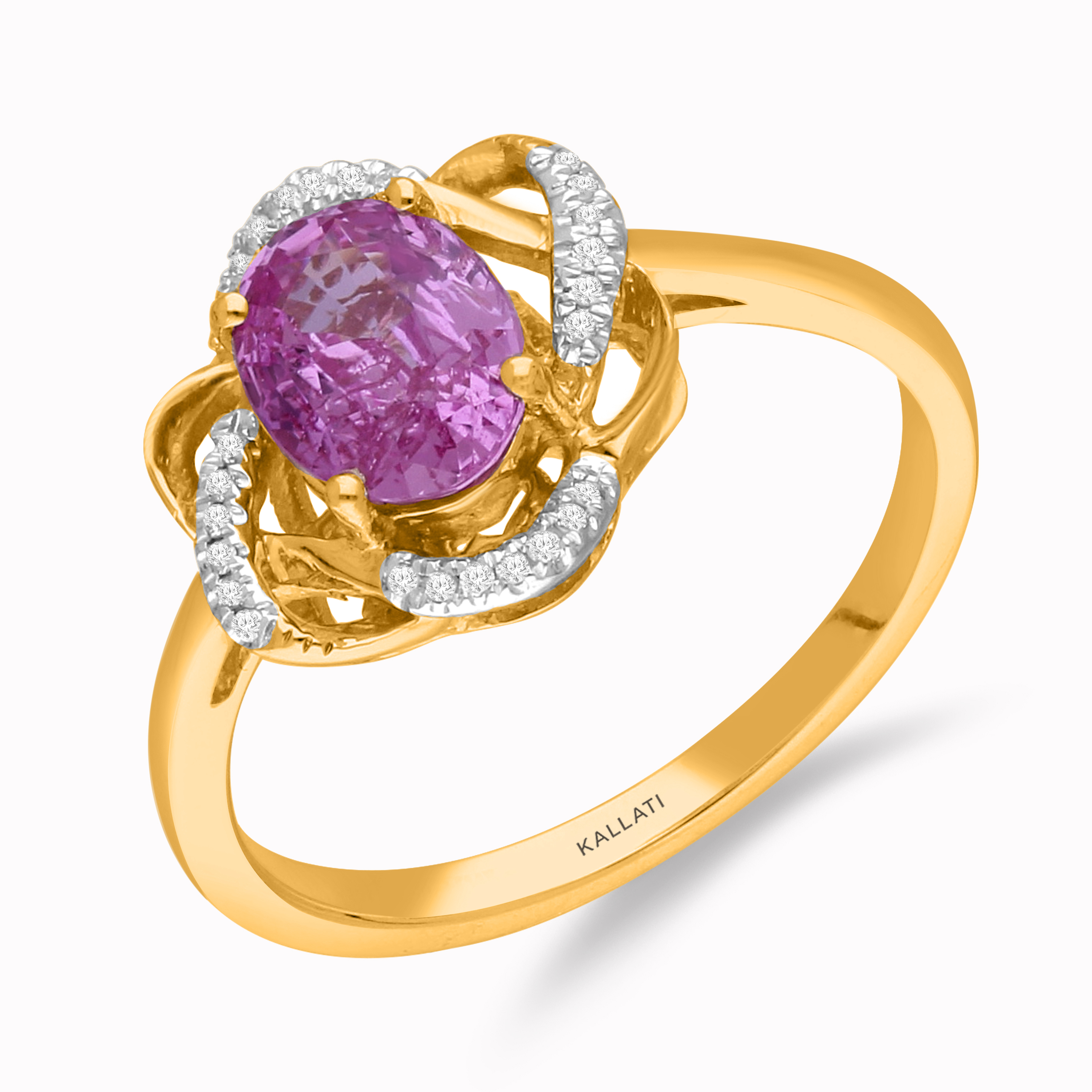 14K YELLOW GOLD PINK SAPPHIRE & WHITE DIAMOND FASHION RING