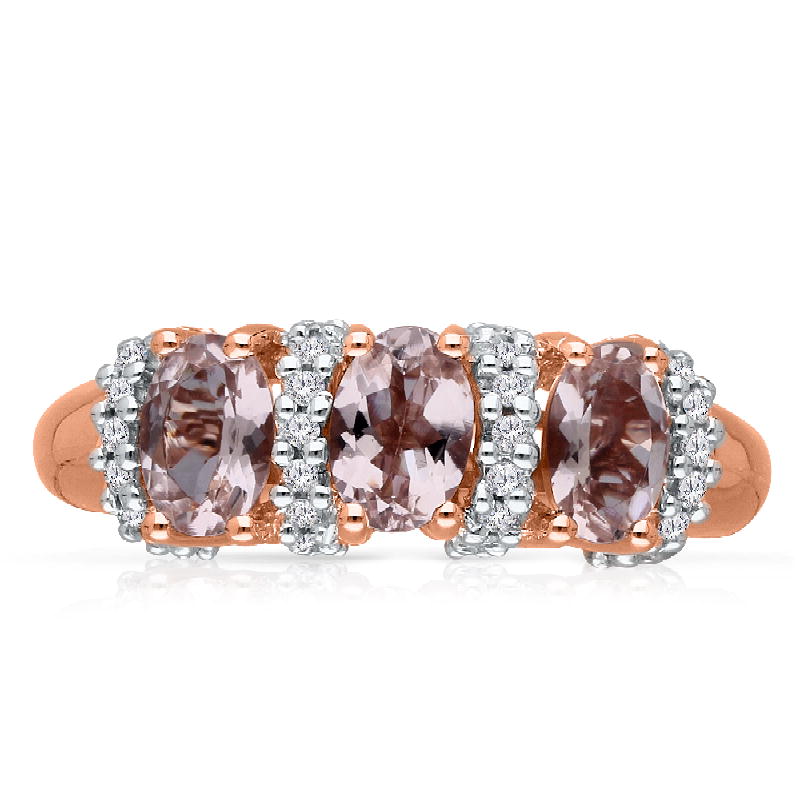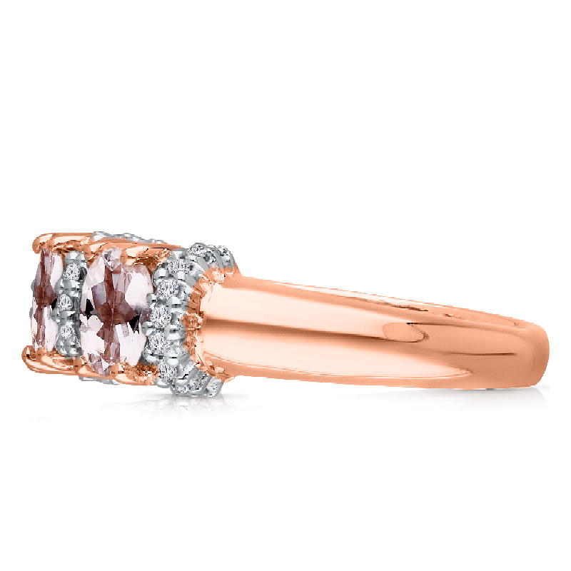 14K ROSE GOLD MORGANITE & WIHTE DIAMOND FASHION RING