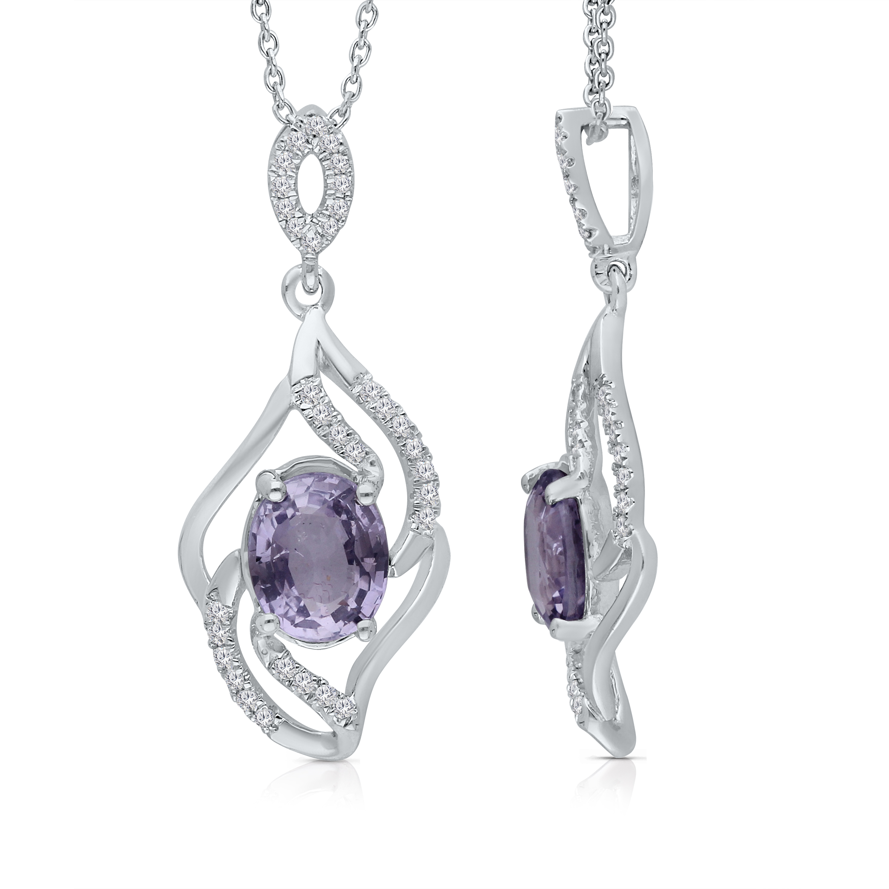14K WHITE GOLD MULTI SAPPHIRE & WHITE DIAMOND FASHION PENDANT