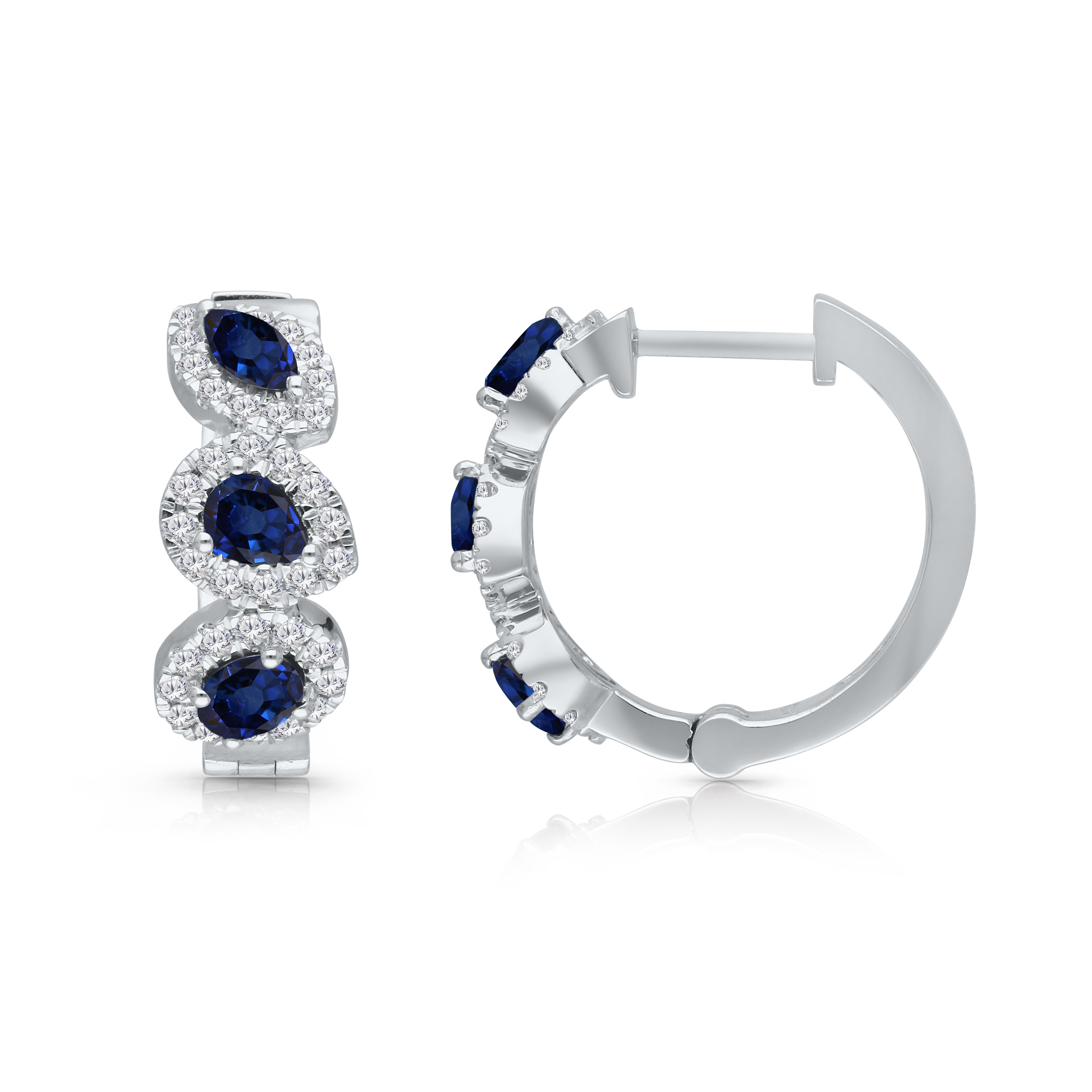 14K WHITE GOLD SAPPHIRE WITH WHITE DIAMOND FASHION EARRING