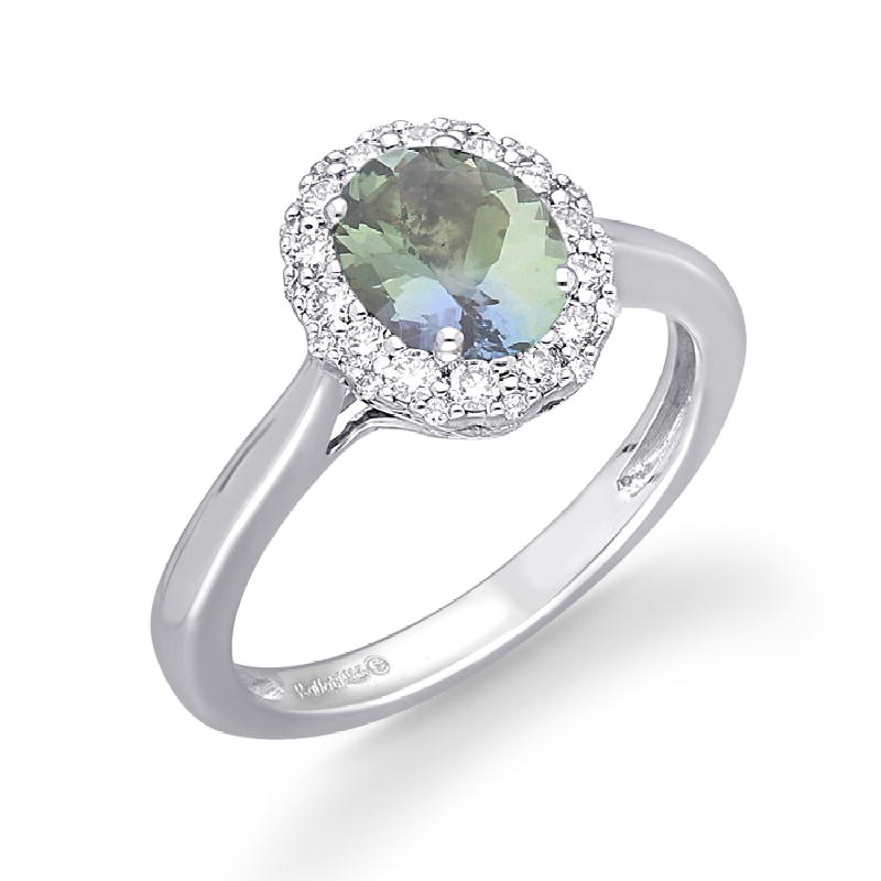 14K WHITE GOLD ALEXANDRITE & WHITE DIAMO