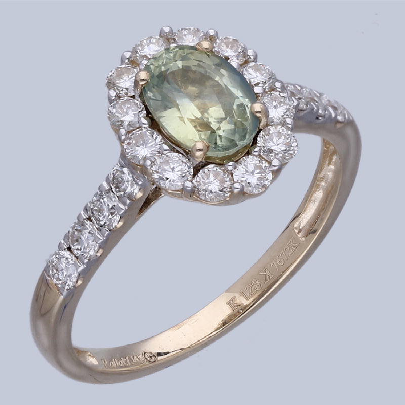 14K YELLOW GOLD SAPPHIRE & WHITE DIAM