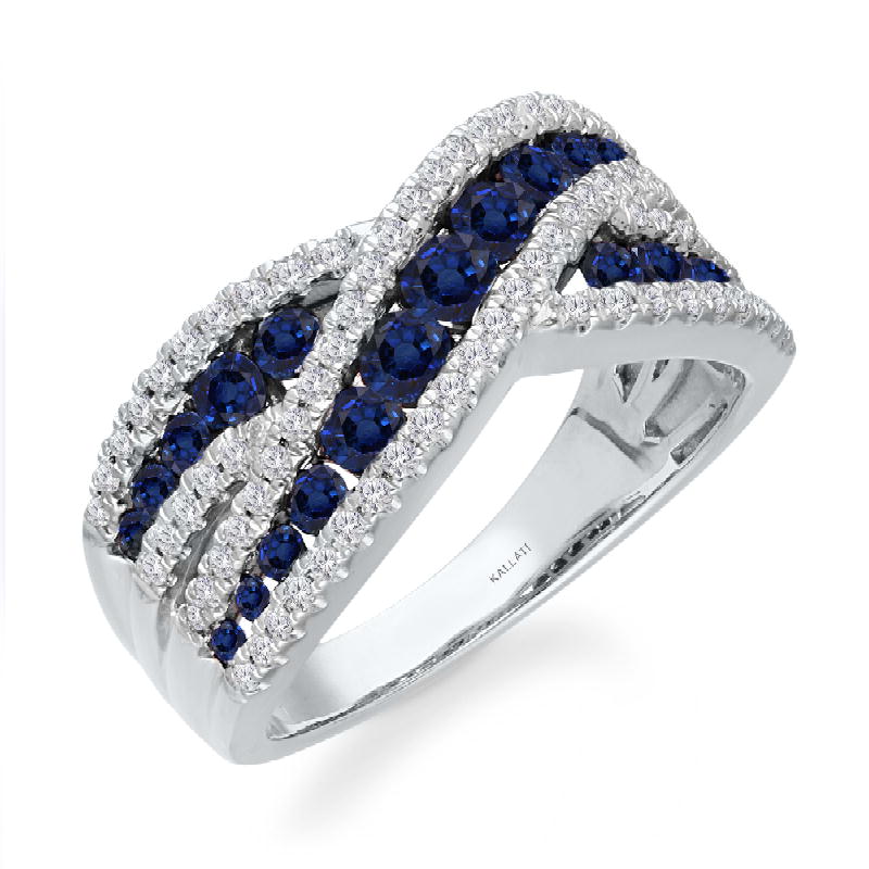 14K WHITE GOLD SAPPHIRE WHITE DIA RING