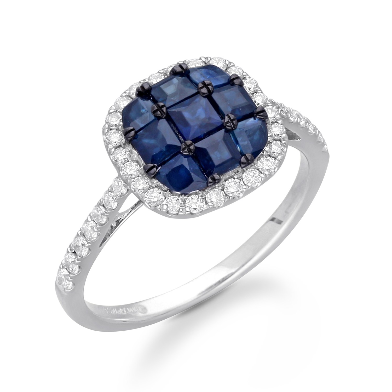 WHITE GOLD SAPPHIRE WHITE DIAMOND RING
