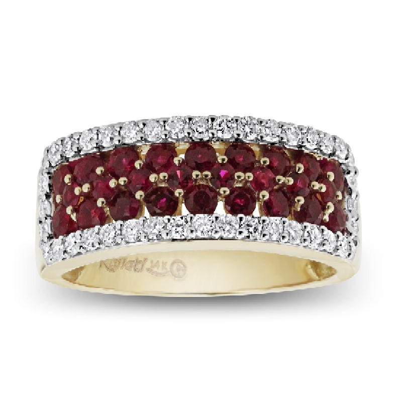 14K YELLOW GOLD RUBY & WHITE DIA RING