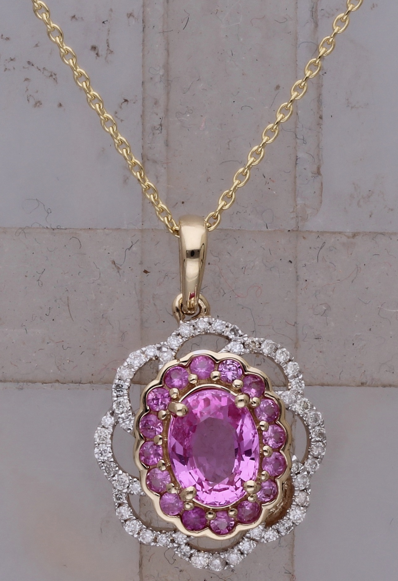 14K YELLOW GOLD SAPPHIRE AND WHITE DIAMOND FAHSION PENDANT