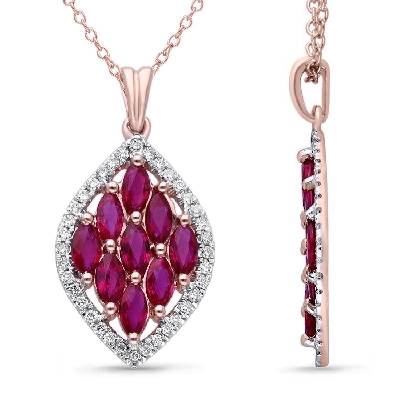 14K ROSE GOLD RUBY & WHITE DIA PENDANT