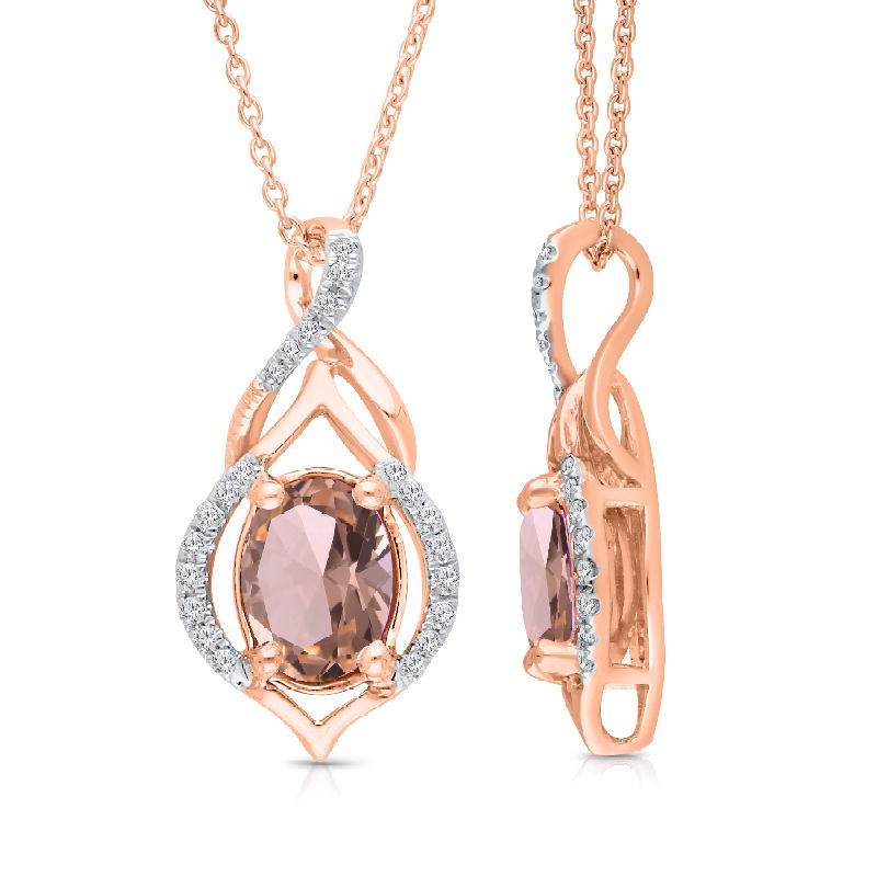 14K ROSE GOLD PINK SAPPHIRE & WHITE DIAMOND FASHION PENDANT