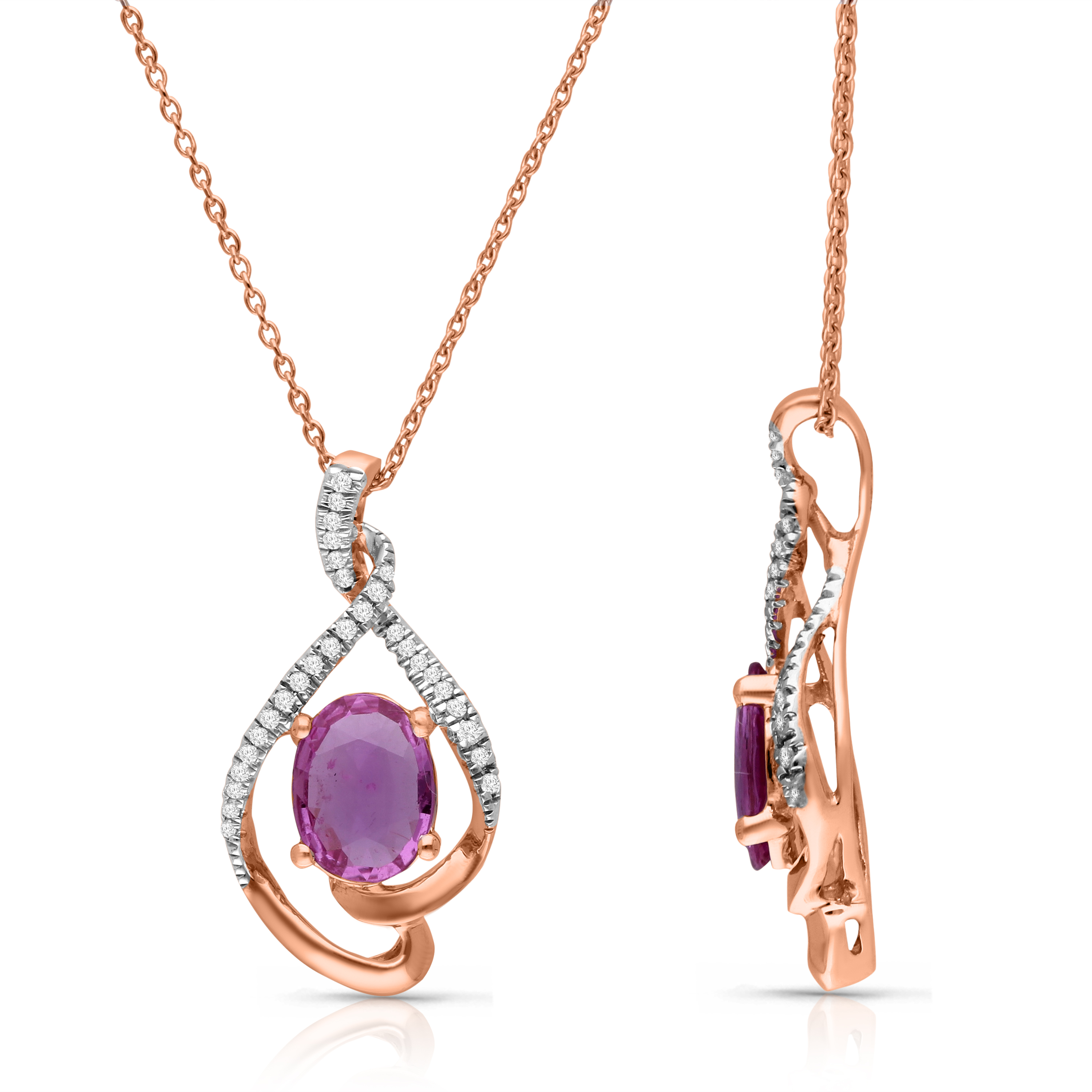 14K ROSE GOLD PINK SAPPHIRE & WHITE DIAMOND FASHION PENDANT