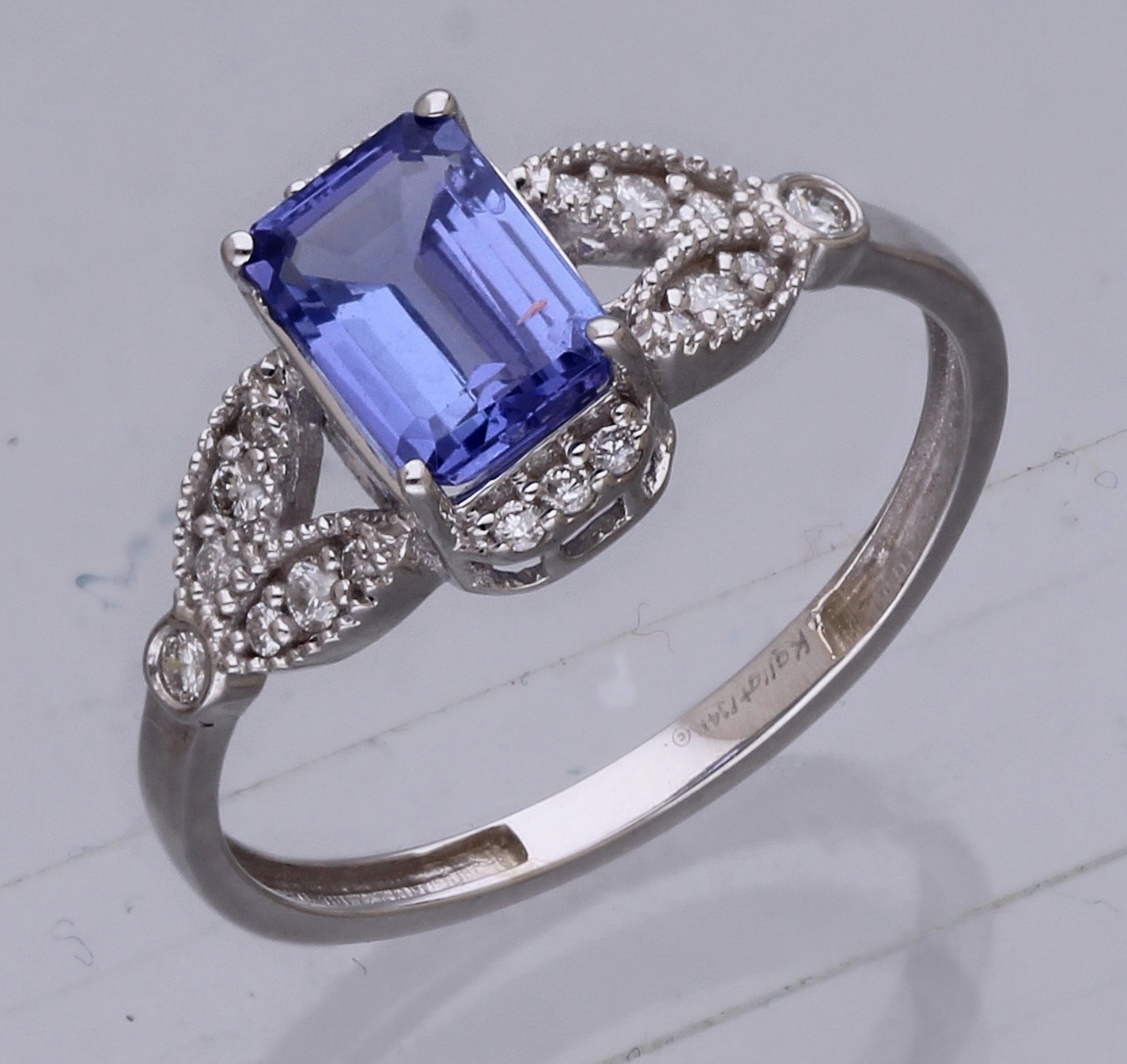 14K WHITE GOLD TANZANITE WITH WHITE DIAMOND FASHION RING