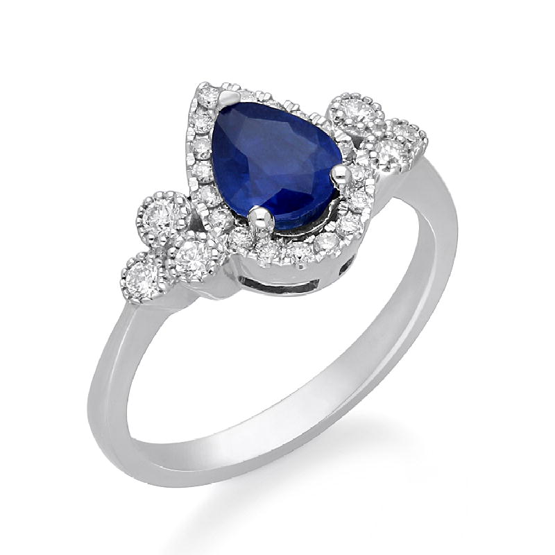 14K WHITE GOLD CEYLON SAPPHIRE DIA RING