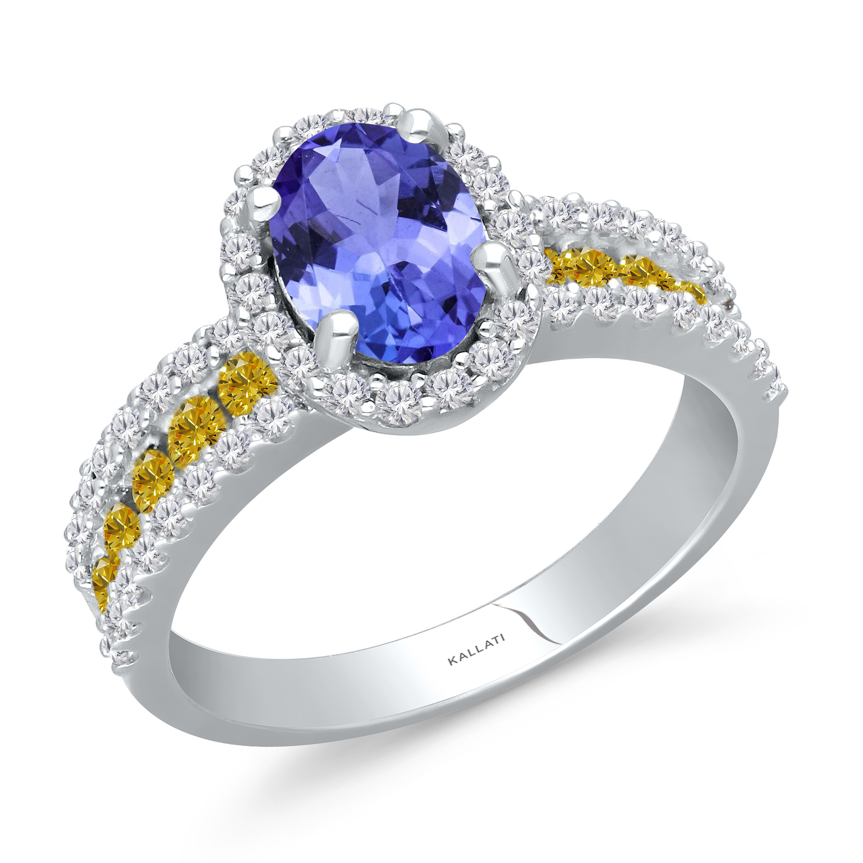 14K WHITE GOLD TANZANITE & YELLOW FANCY WHITE DIAMOND RING