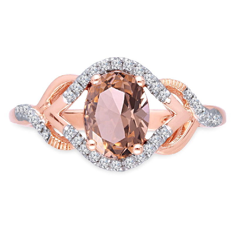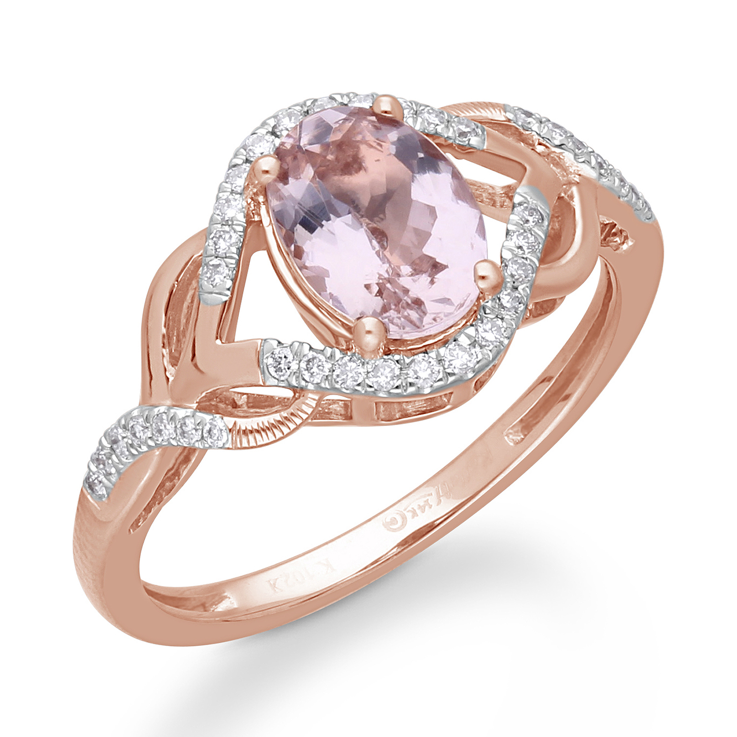 14K ROSE GOLD MORGANITE & WHITE DIA RING