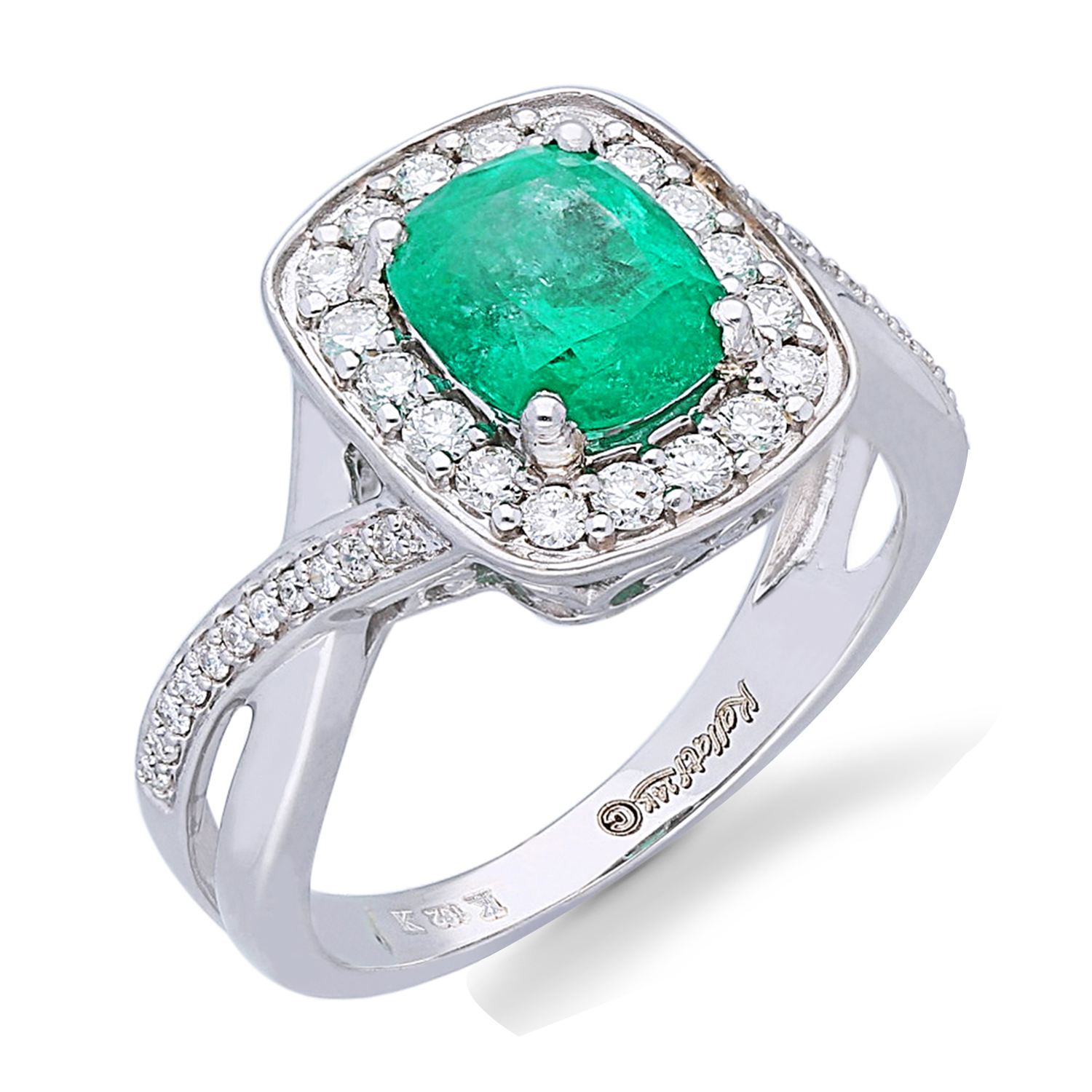14KWHITE GOLD COLUMBIA EMERALD & WHITE DIAMOND FASHION RING