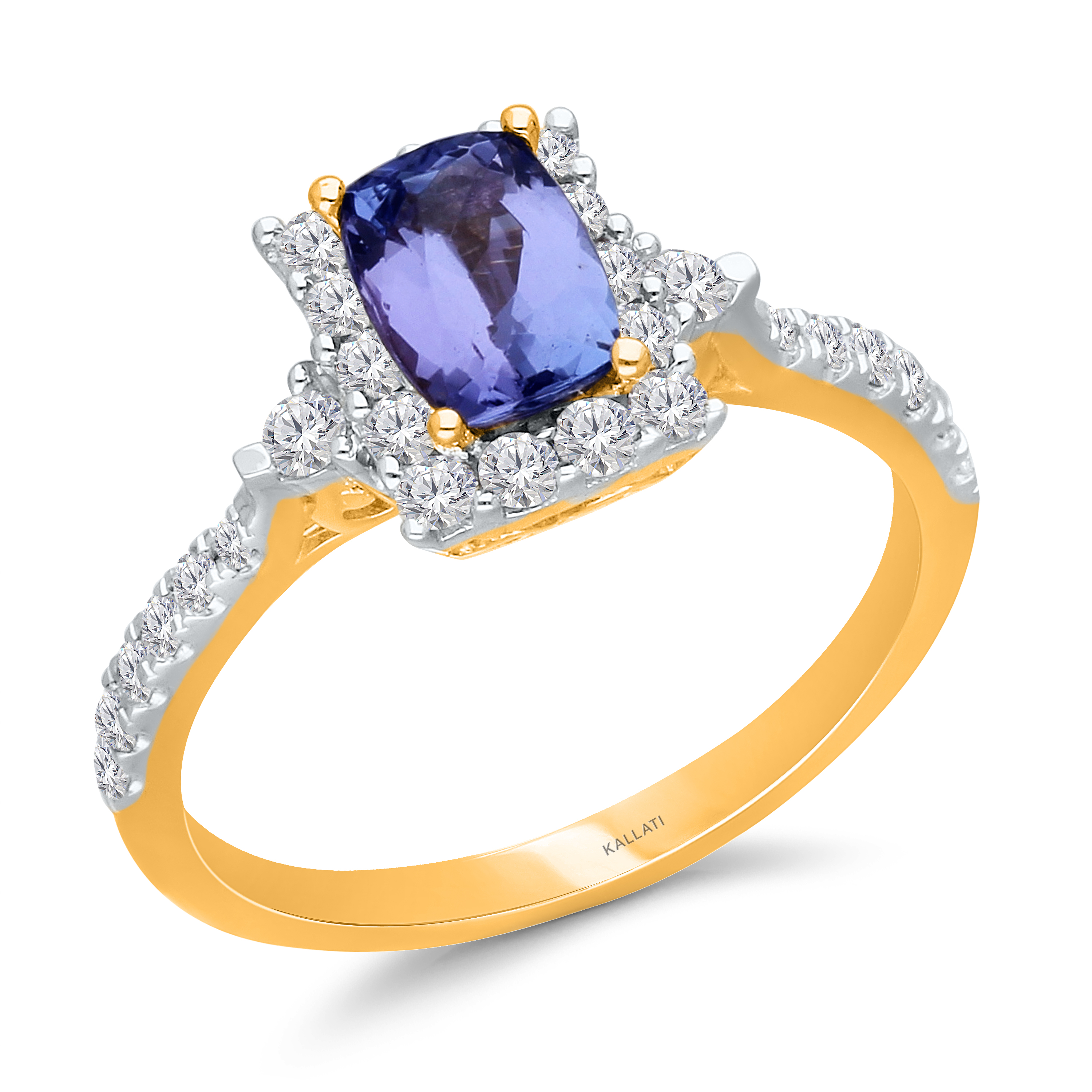 14K YELLOW GOLD TANZANITE & WHITE DIAMON