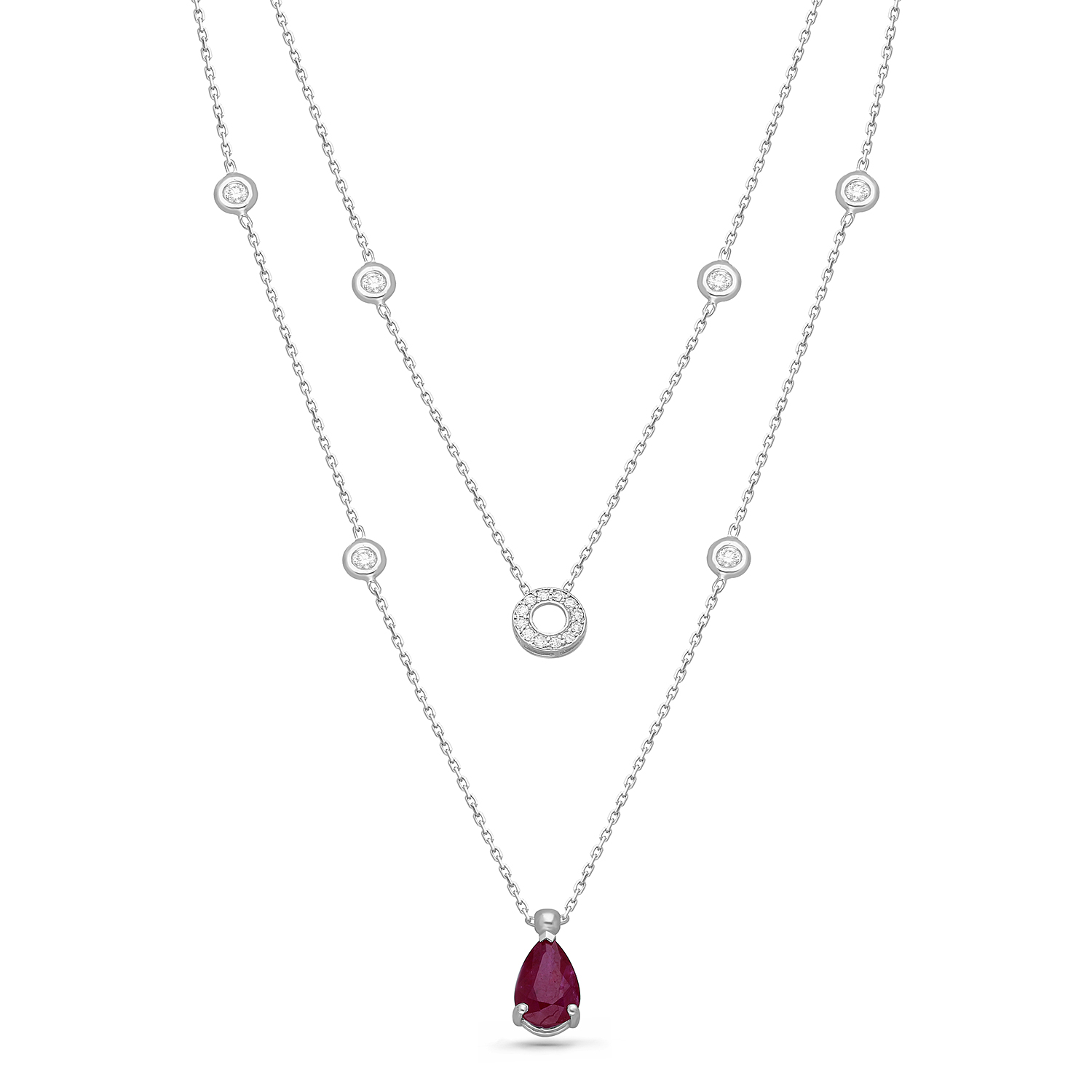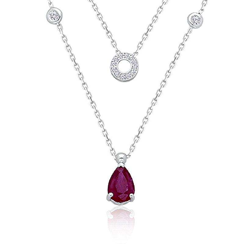 14K WHITE GOLD RUBY WITH WHITE DIAMOND