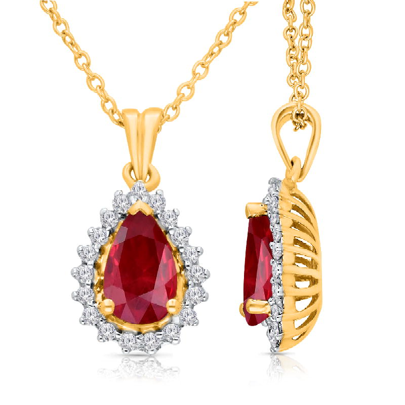 14K YELLOW GOLD RUBY & WHITE DIAMOND FAS