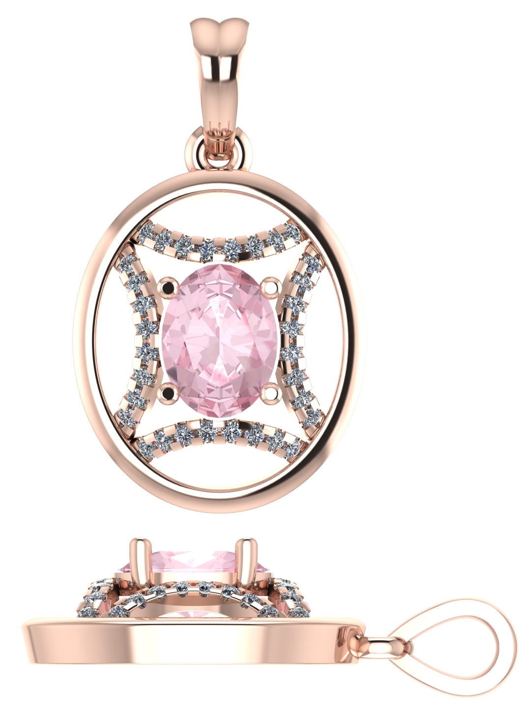 14K ROSE GOLD MORGANITE & WHITE DIAMOND
