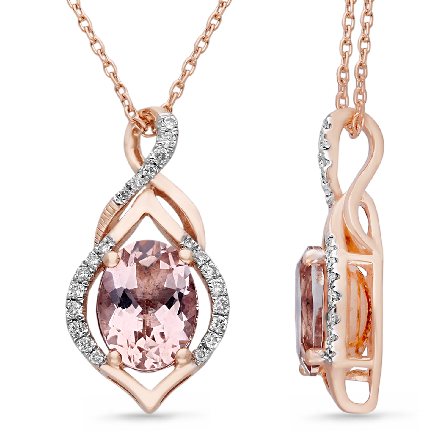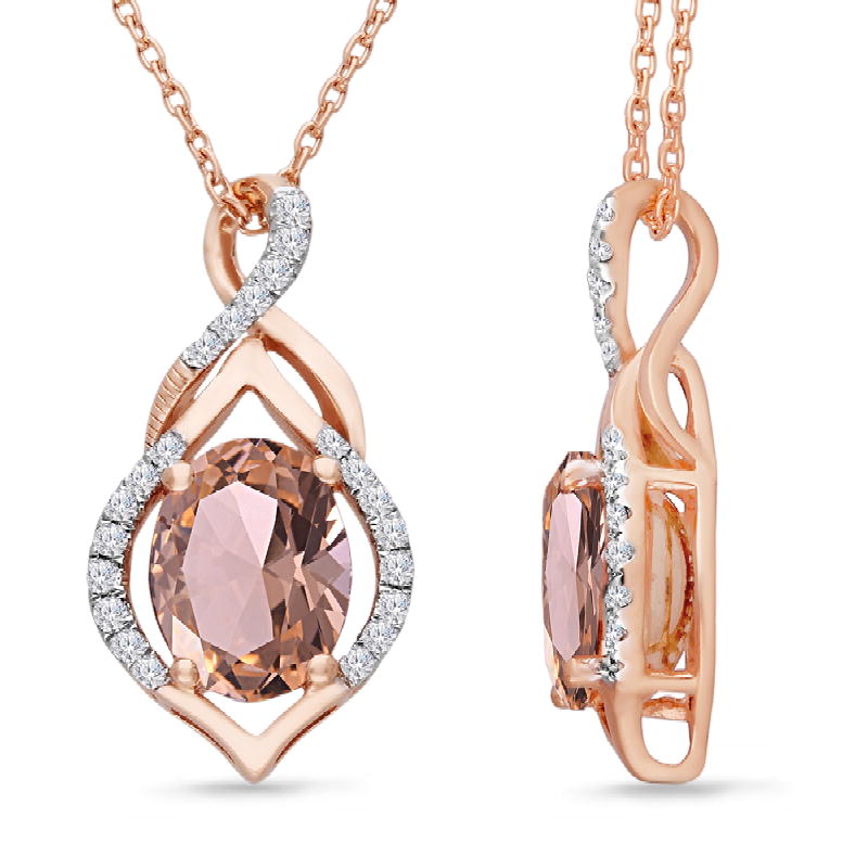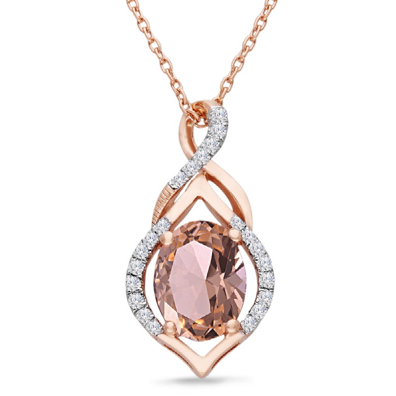 14K ROSE GOLD MORGANITE & WHITE DIA PEND