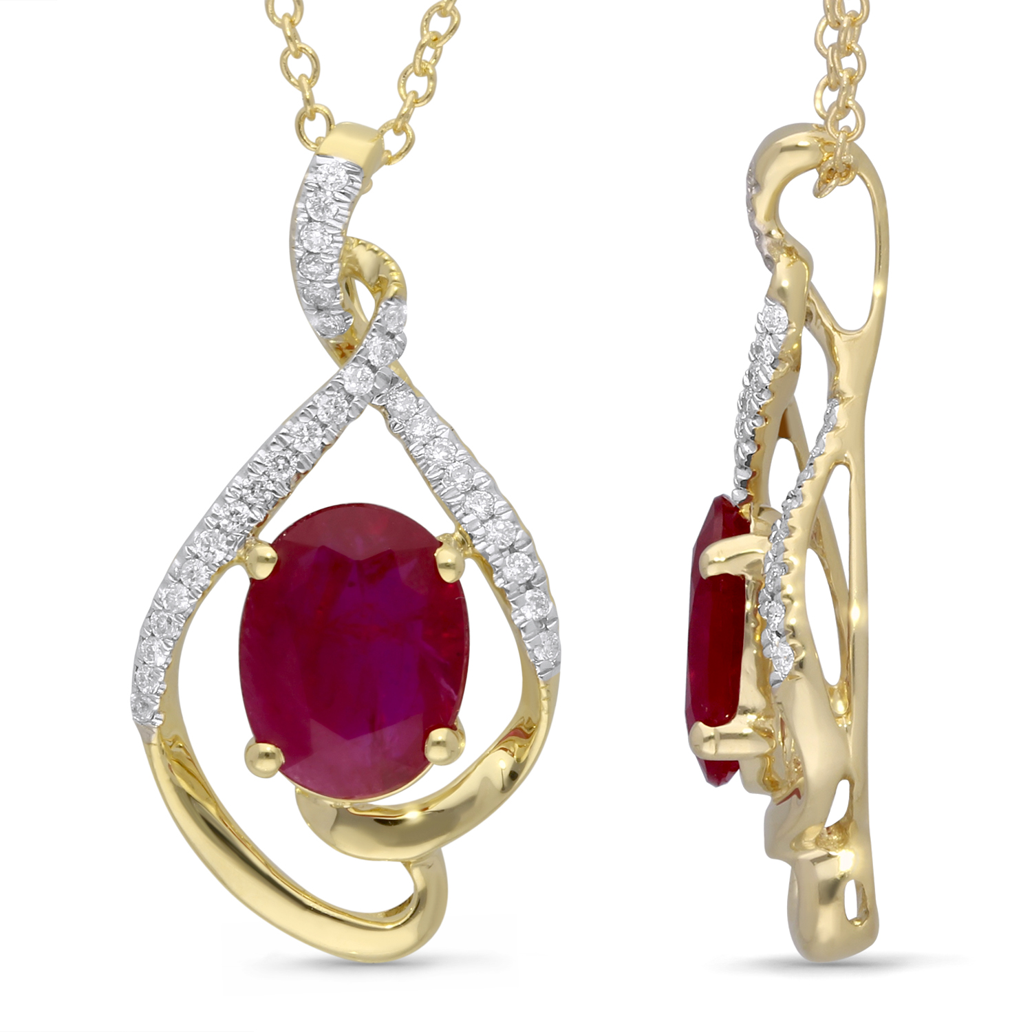 14K YELLOW GOLD RUBY WITH WHITE DIAMOND FASHION PENDANT