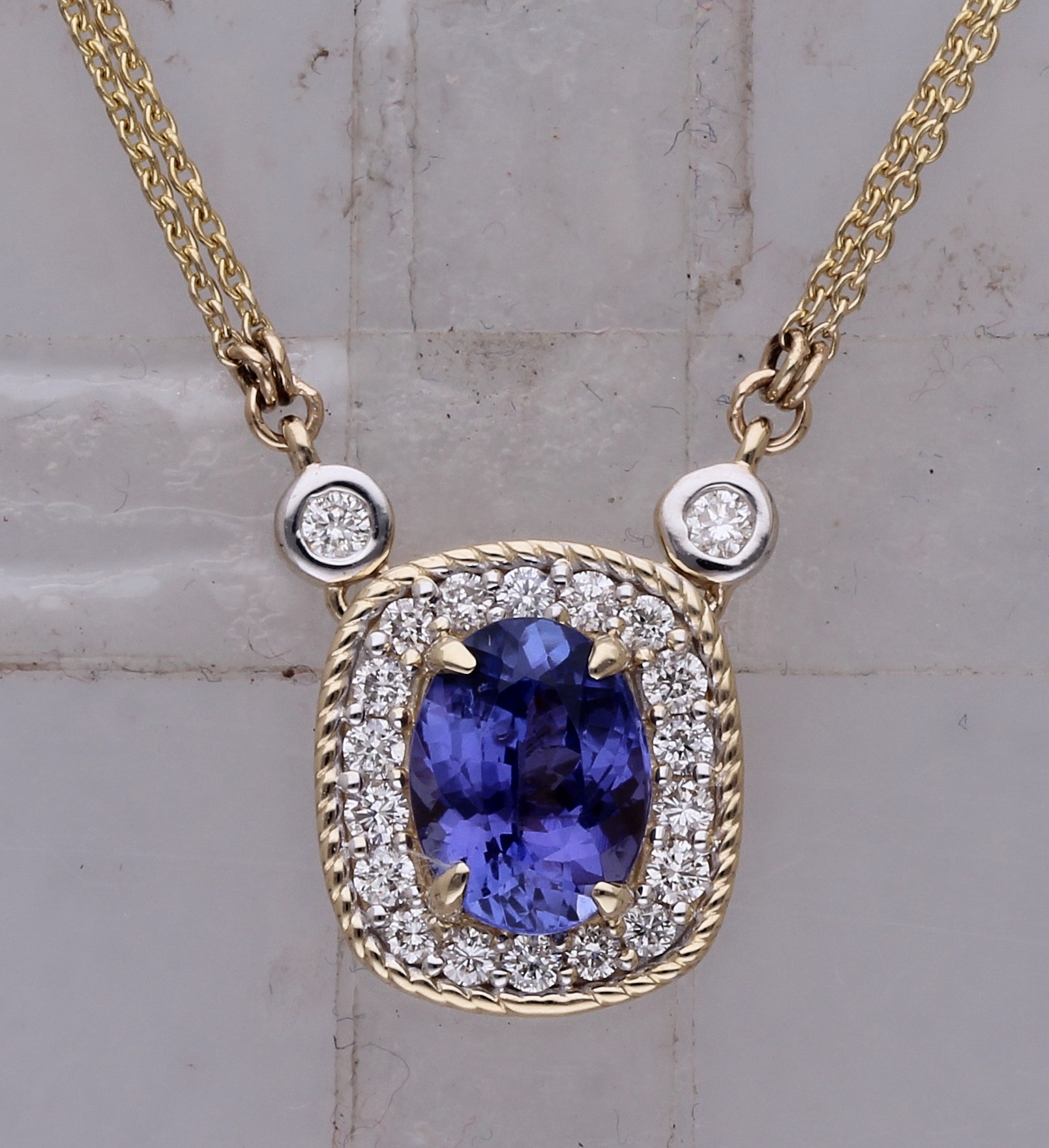 14K YELLOW GOLD TANZANITE WITH WHITE DIAMOND FASHION NECKLACE