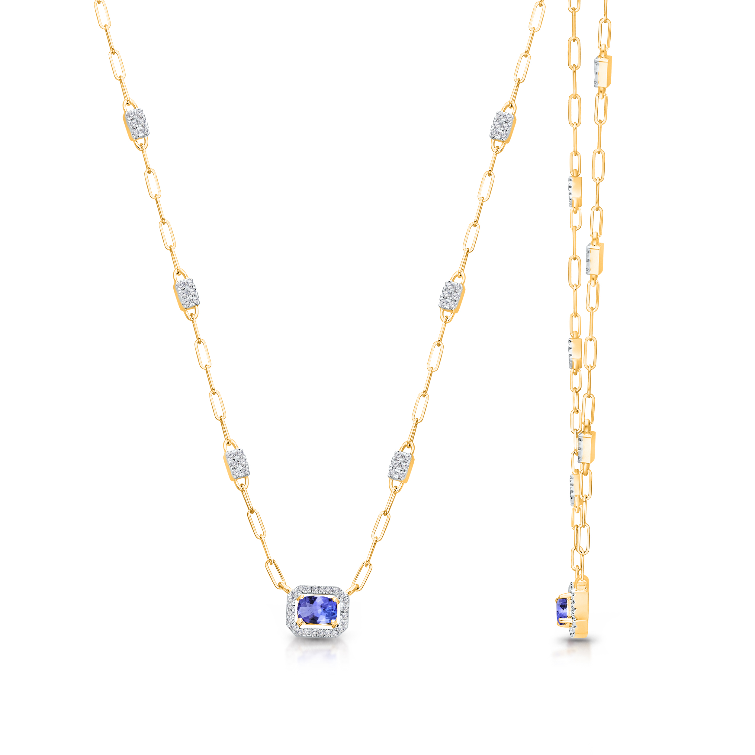 14K YELLOW GOLD TANZANITE WITH WHITE DIAMOND FASHION NECKLACE