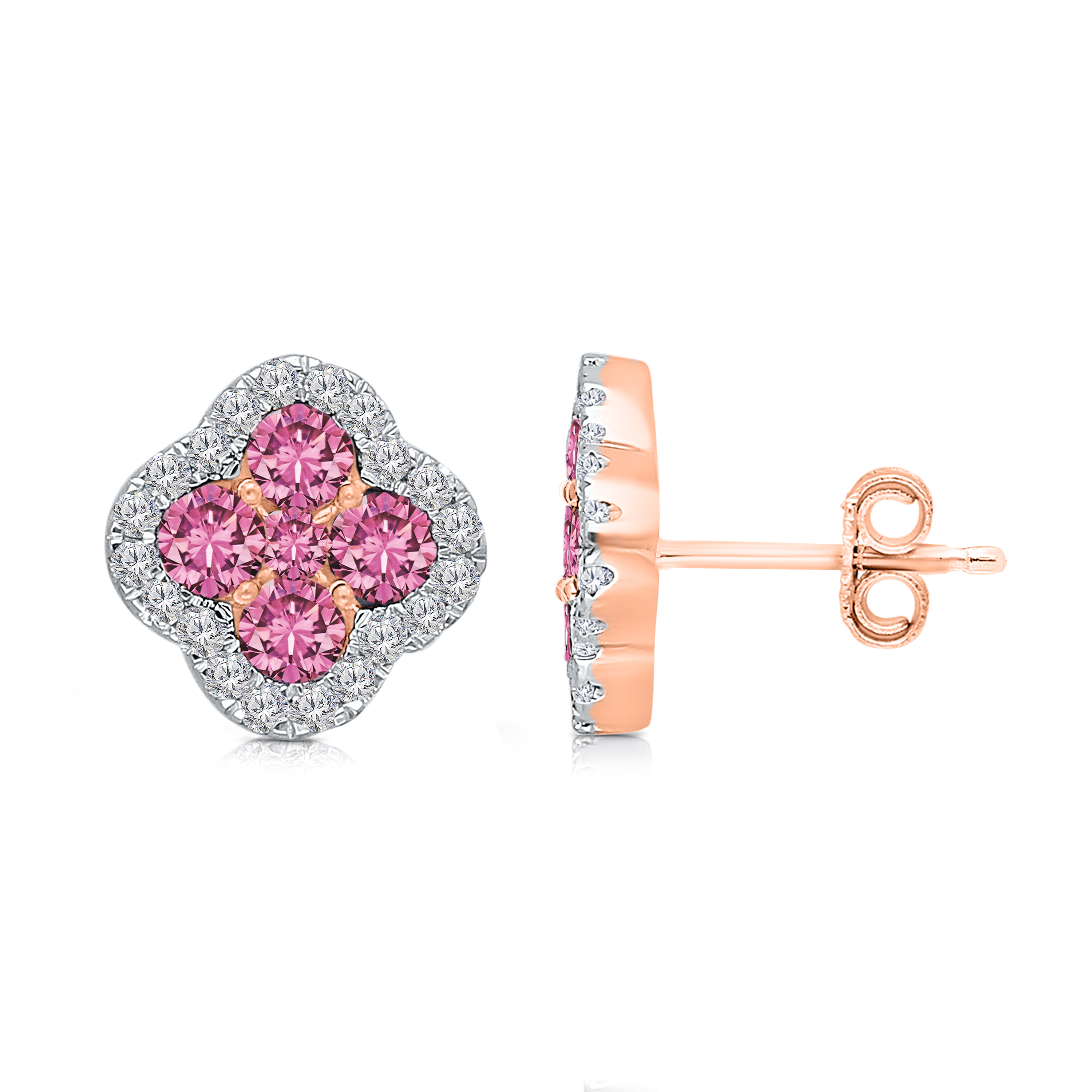 14K ROSE GOLD PINK SAPPHIRE & WHITE DIAMOND FASHION EARRING