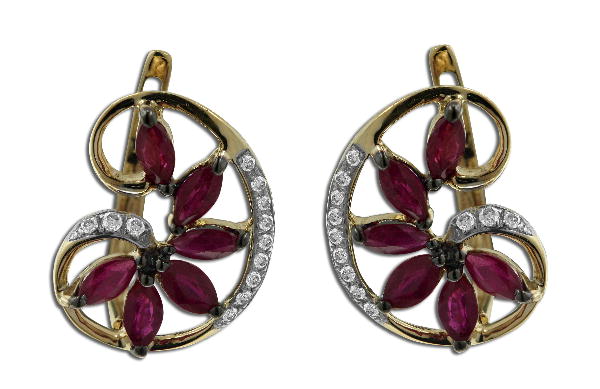 14K YELLOW GOLD BLUE TOPAZ & AMETHYST WITH WHITE DIAMOND FASHION EARRING