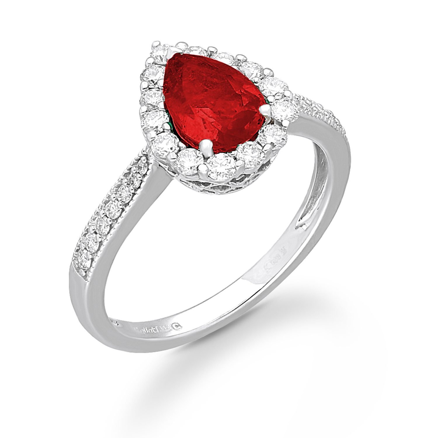 14K WHITE GOLD GIA RUBY & WHITE DIAMOND