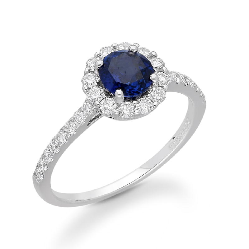 14K WHITE GOLD CEYLON SAPPHIRE & WHITE D