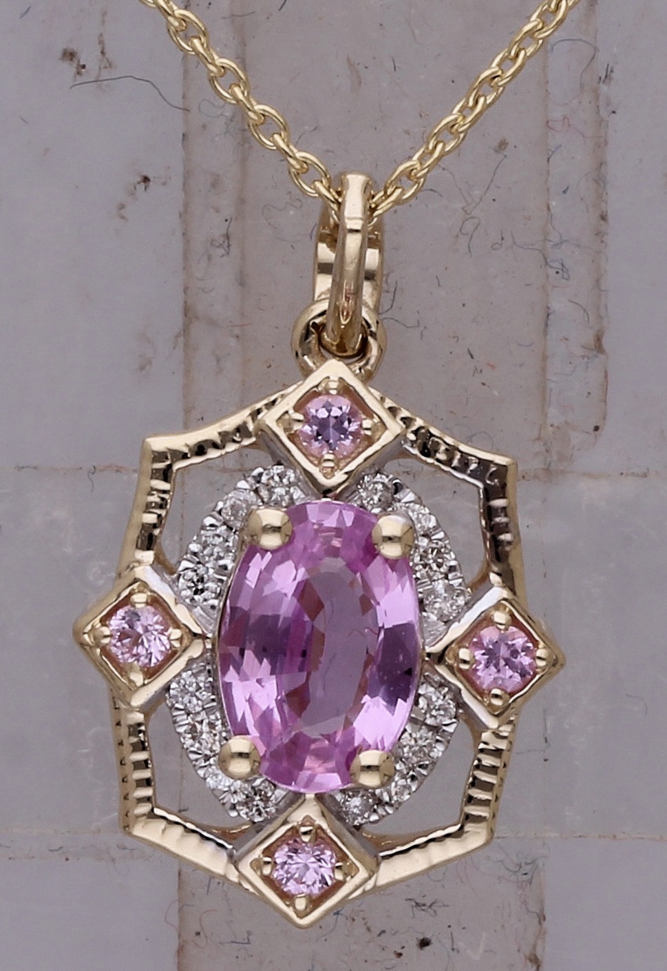 14K YELLOW GOLD MULTI SAPPHIRE WITH WHITE DIAMOND FASHION PENDANT