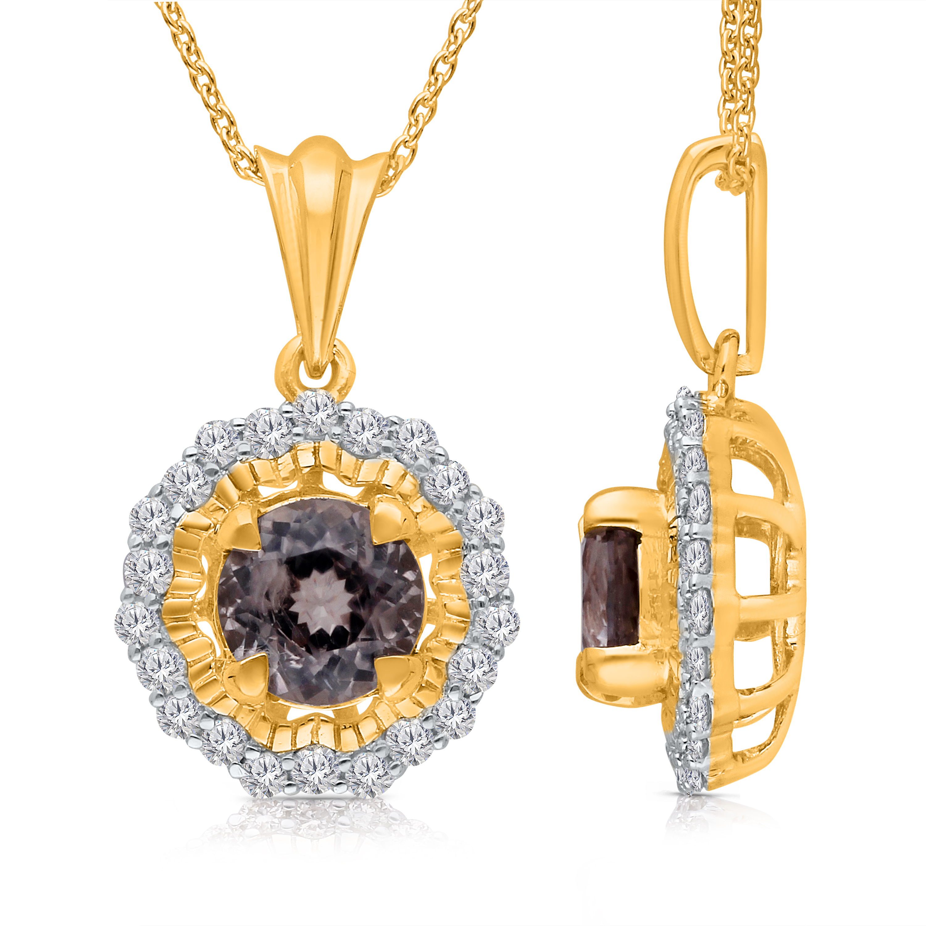 14K YELLOW GOLD CSARITE WITH WHITE DIAMOND FASHION PENDANT