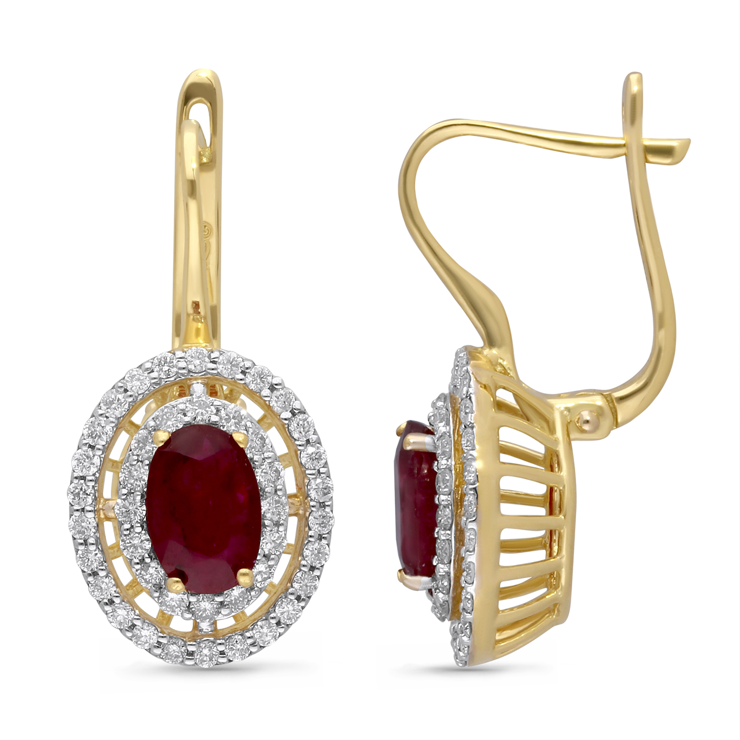 14K YELLOW GOLD RUBY& WHITE DIA EARRING
